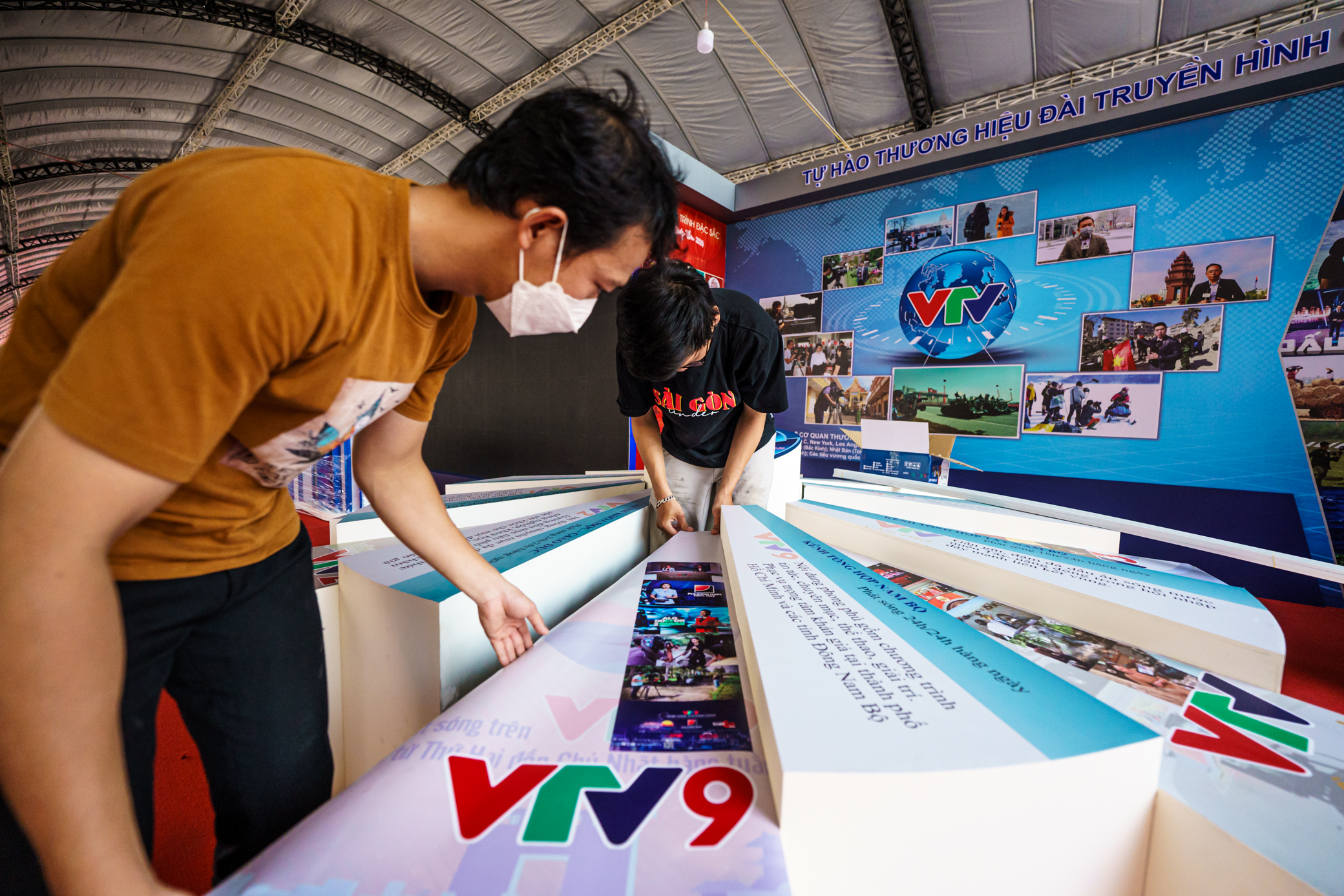 Gian trưng bày của Đài truyền hình TP.HCM đã hoàn thành công tác chuẩn bị sẵn sàng cho buổi khai mạc ngày mai.