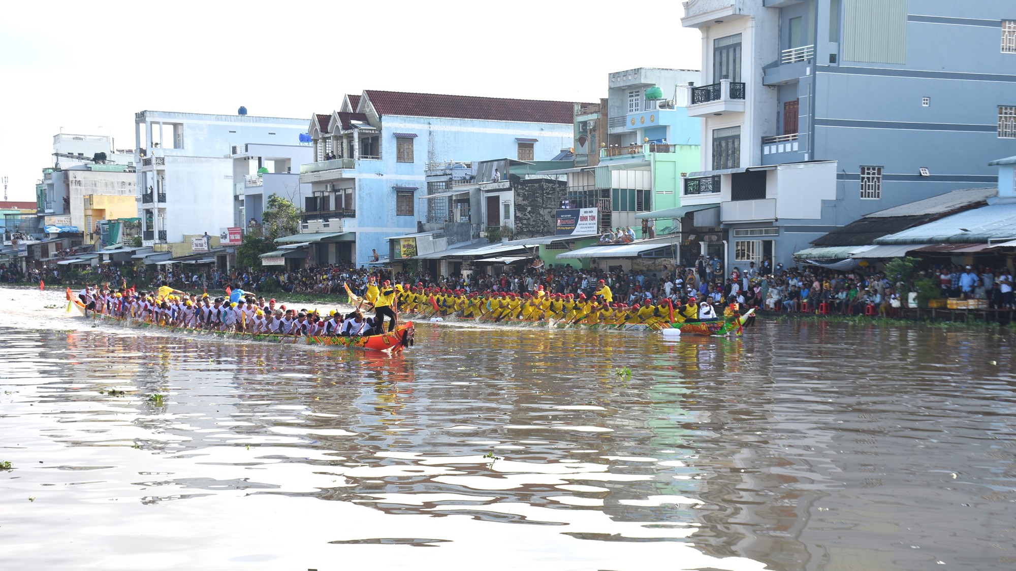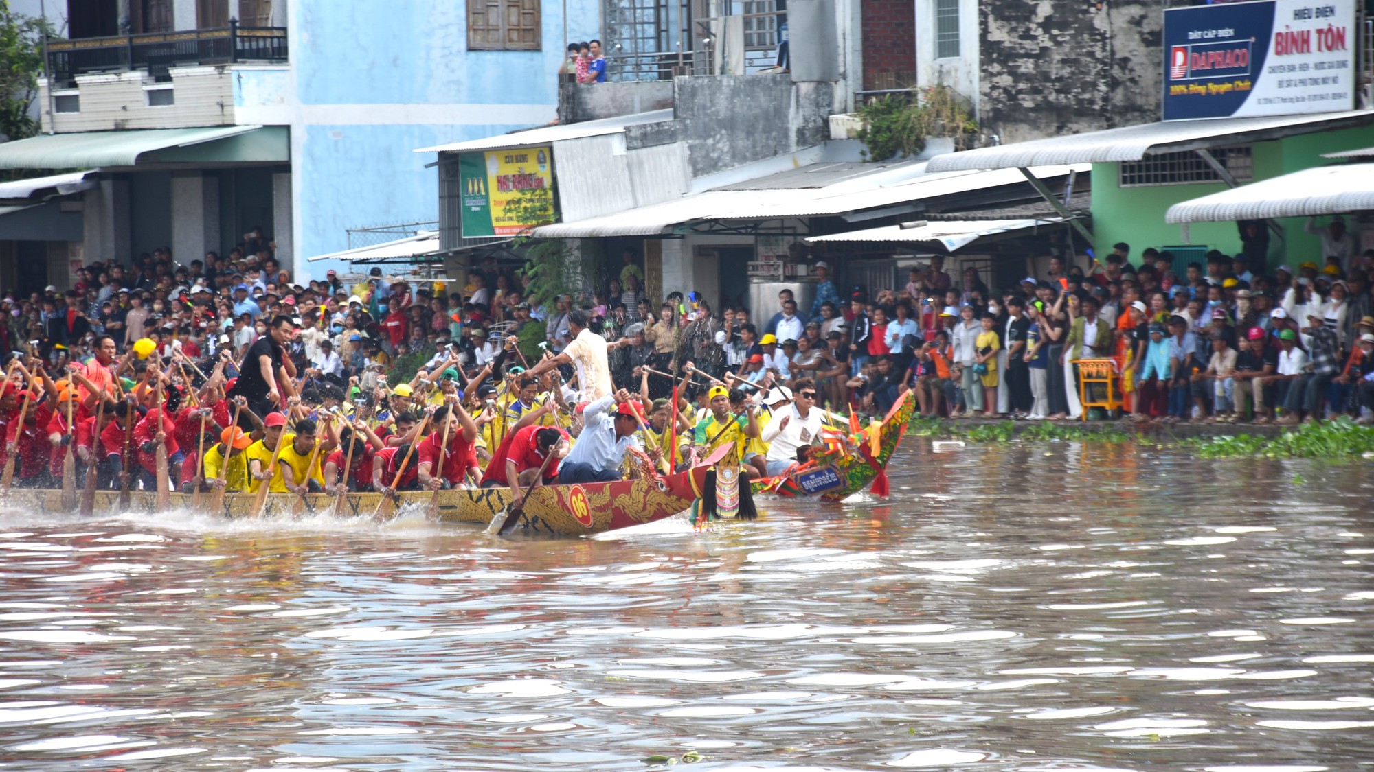 Tranh tài ở cự ly 1.000m, các đội bước vào những màn so kè quyết liệt, sôi động, từng nhịp chèo dồn dập khuấy động mặt nước trong tiếng reo hò cổ vũ vang dội hai bên bờ.