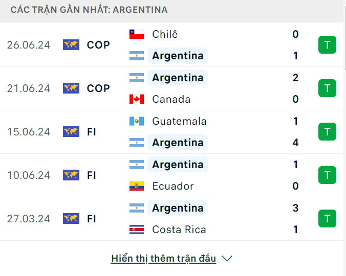 Phong độ thi đấu Argentina
