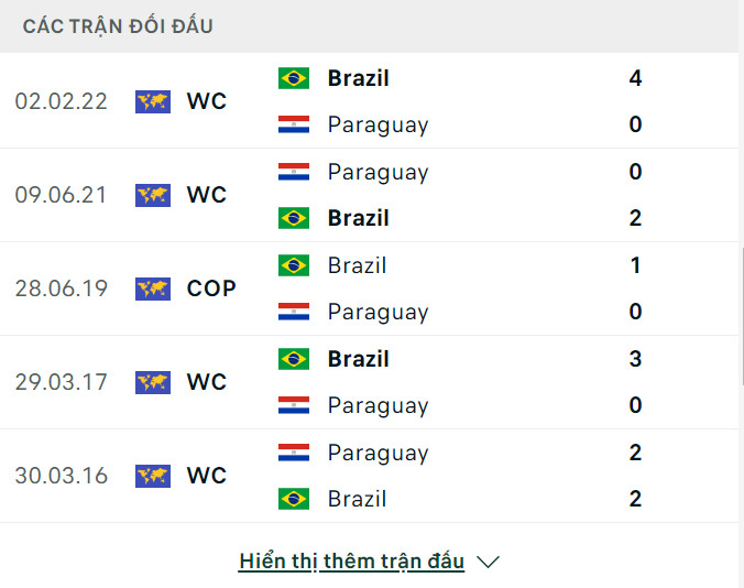 Theo thống kê, trong 4 lần gặp nhau gần nhất, Brazil có đến 3 chiến thắng với cách biệt trên 2 bàn trước Paraguay.