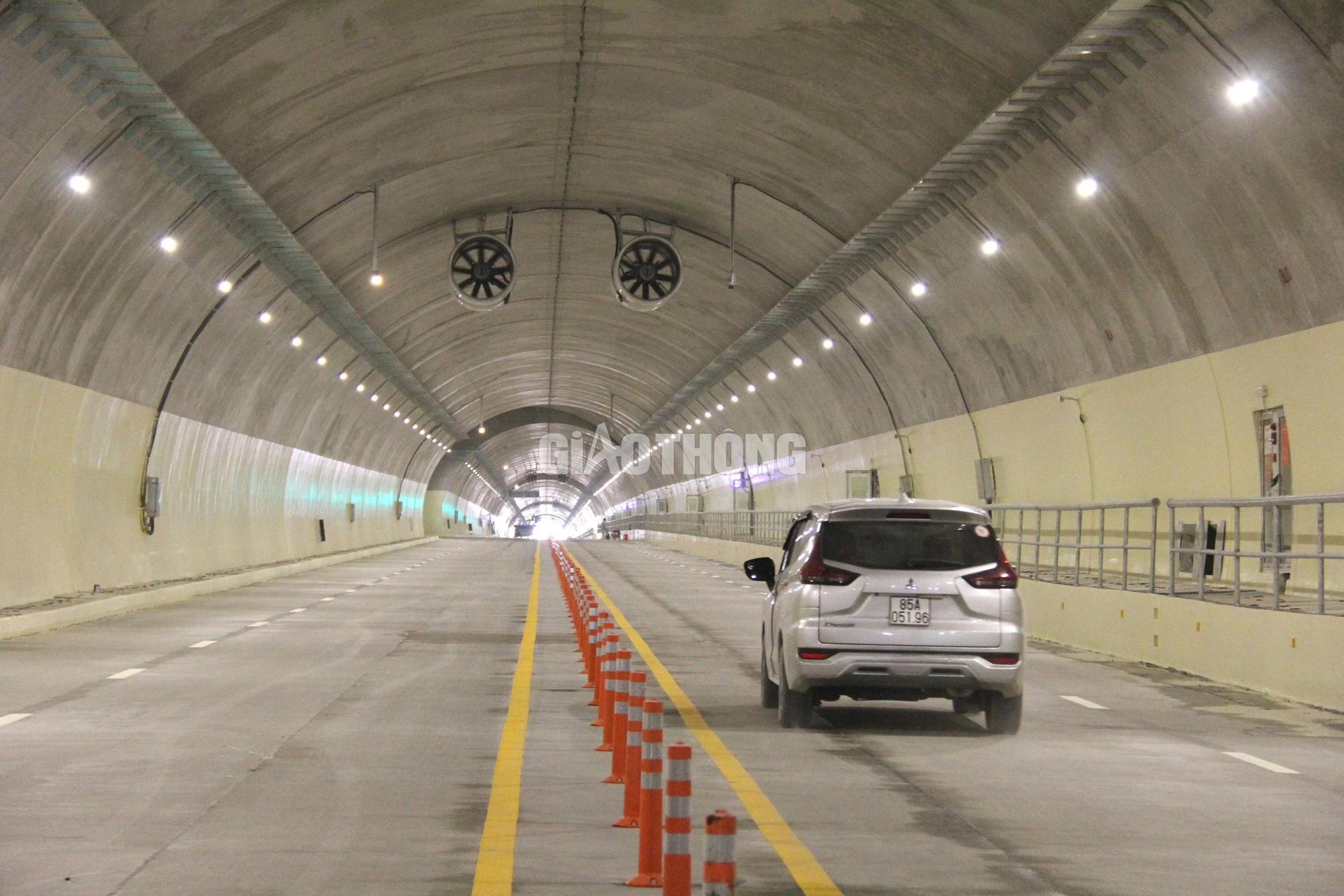 Bên trong hầm núi Vung dài hơn 2,2km hệ thống "mắt thần" được lắp đặt nhiều vị trí để giám sát từ xa.
