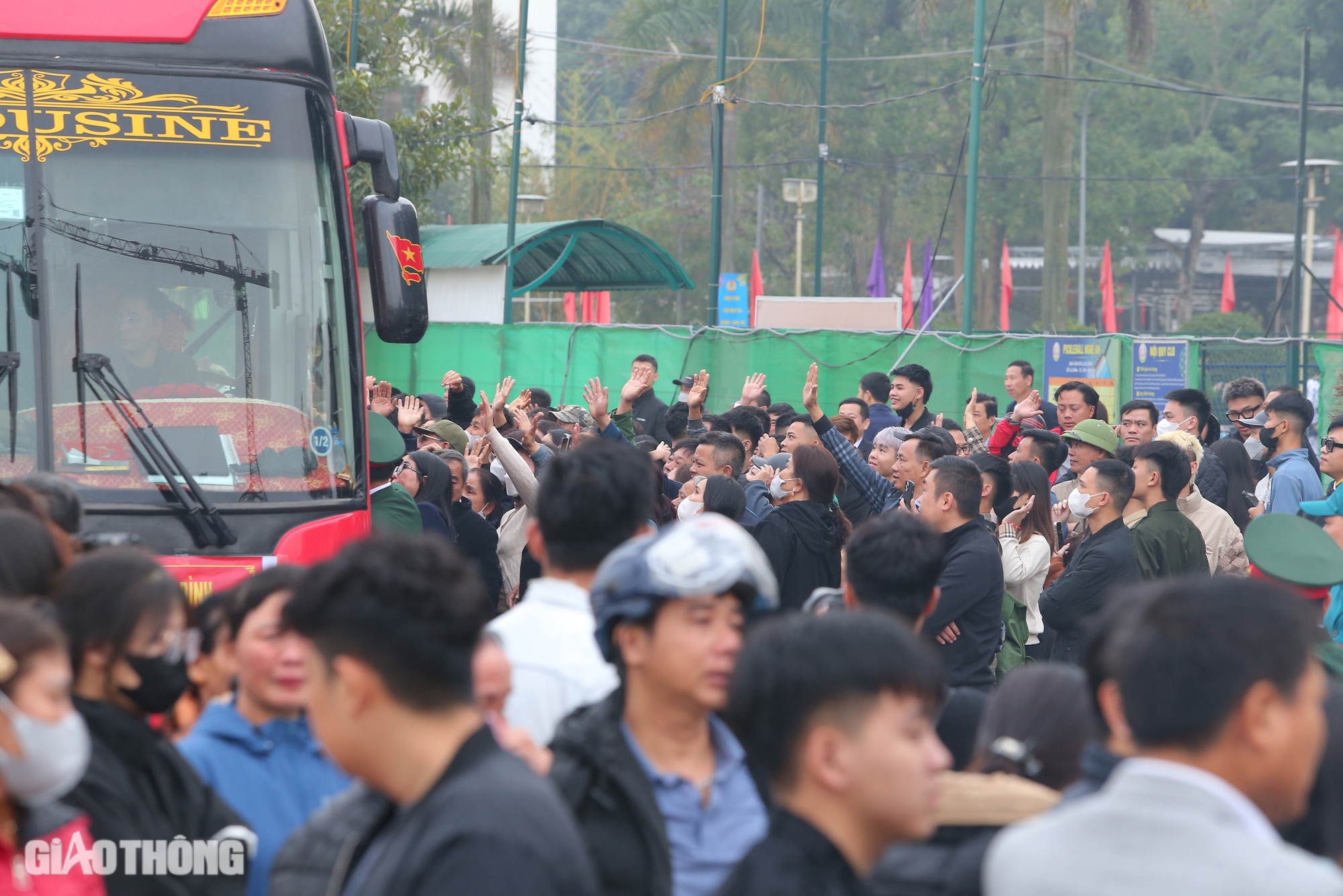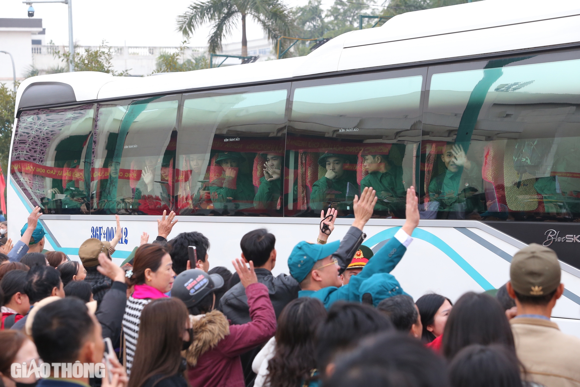 Người thân chào tạm biệt các tân binh lên đường nhập ngũ trong sáng ngày 14/2.