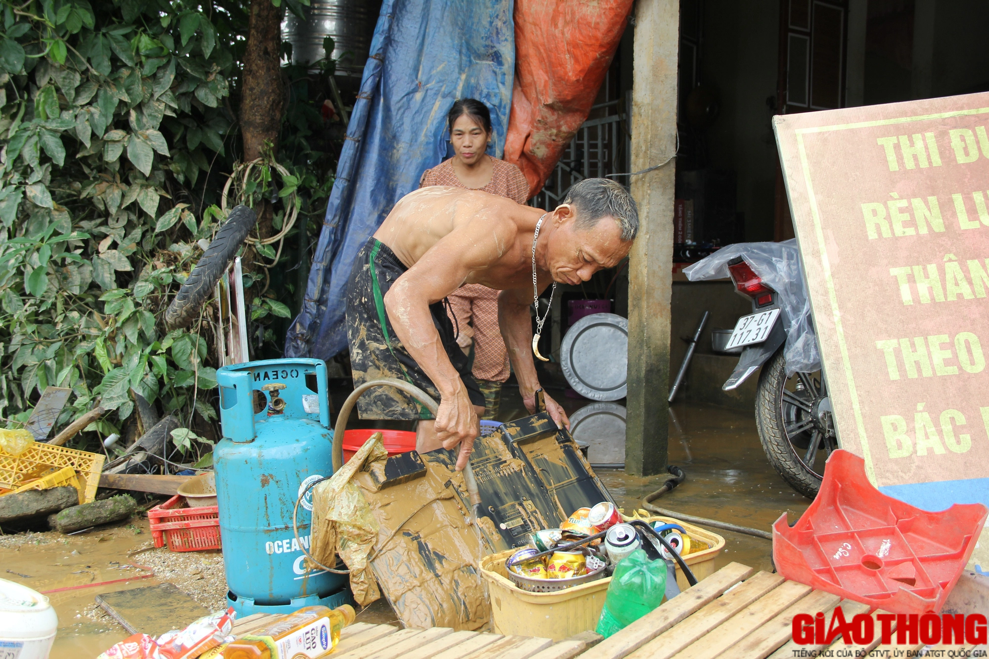 “Khi nước ngập gần hết tầng hầm, không thấy mẹ ở đâu, tôi hô hoán người dân xung quanh cứu giúp, ai cũng nghĩ bà bị nước cuốn trôi. Đến khi phát hiện bà còn nằm trên chiếc đệm hơi, quần áo đã ướt hết, người thì giữ bà khỏi bị chìm, người thì cắt, dỡ mái ngói. Với sự hỗ trợ của người dân, lực lượng công an, sau gần một giờ đã đưa bà lên an toàn", ông Thắng kể lại.