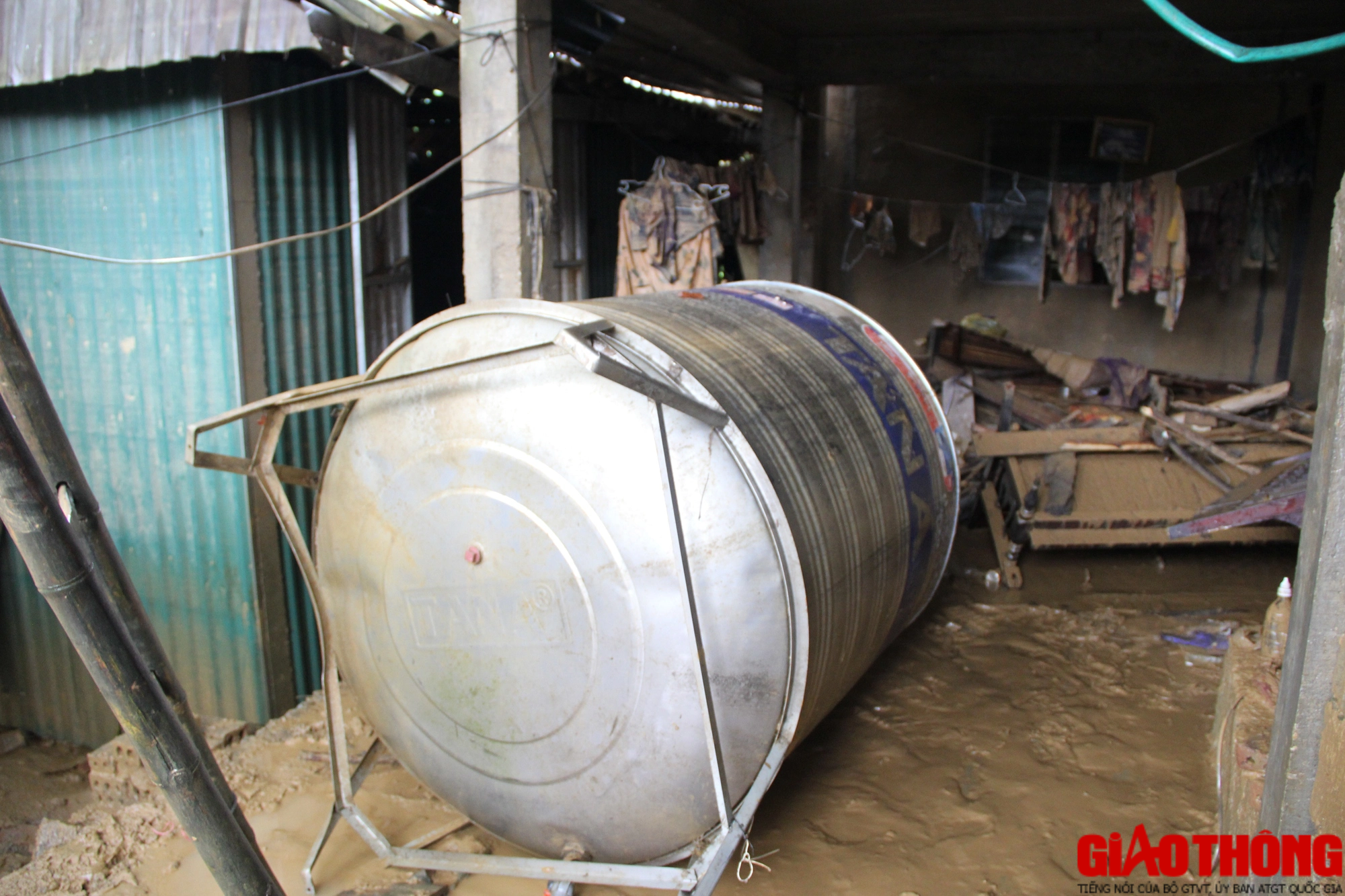 Lúc nước vào, căn nhà của gia đình ông Đặng Văn Thắng (SN 1967, trú khối 3, thị trấn Tân Lạc) ngập từ 4 - 6 mét. Nước rút, để lại cảnh tan hoang trong ngôi nhà nhỏ.