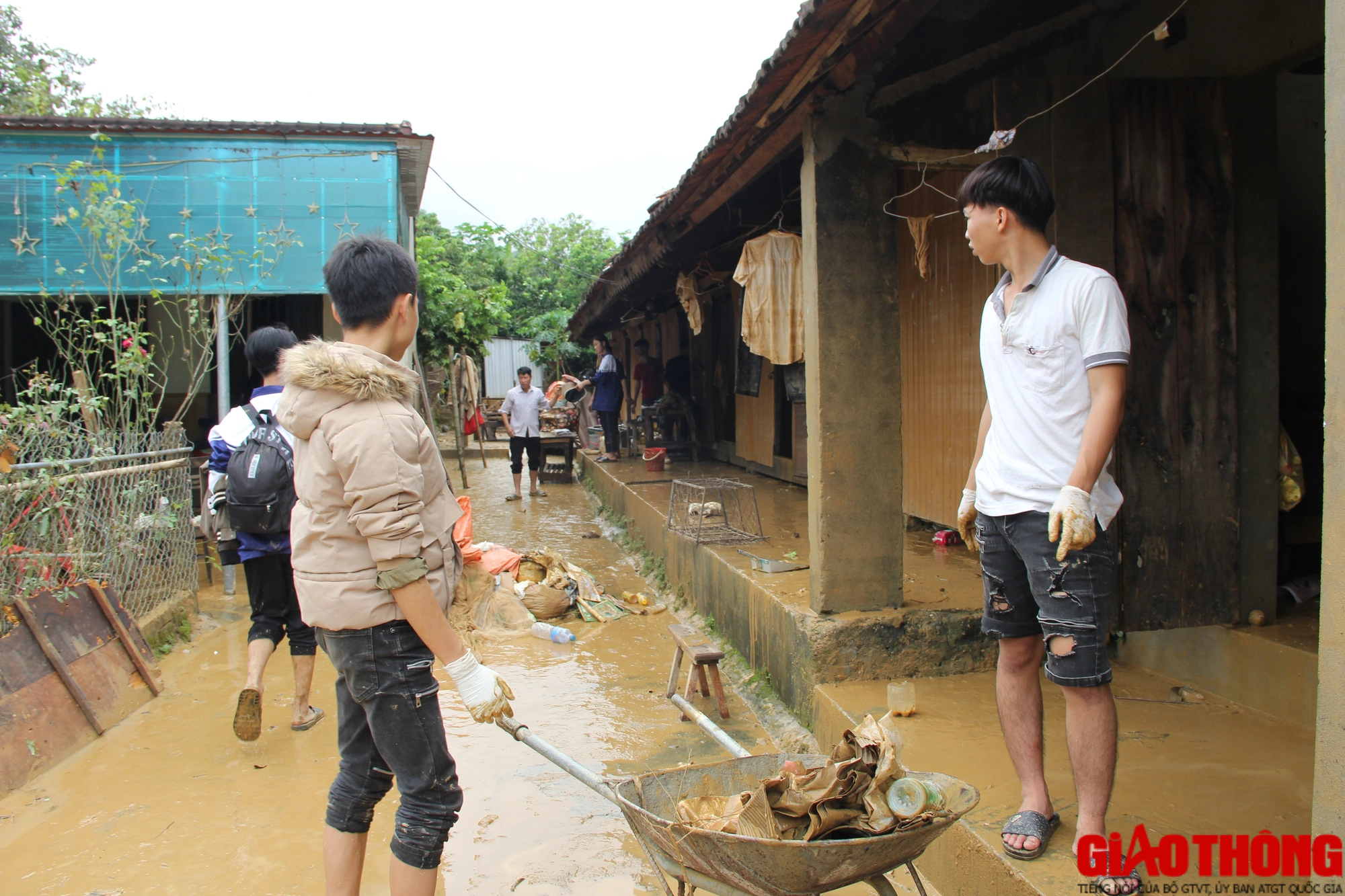 Bên cạnh người dân, các em học sinh Trường THPT Quỳ Châu cũng dọn dẹp nhà trọ, sách vở, đồ dùng học tập để sớm ổn định việc học.