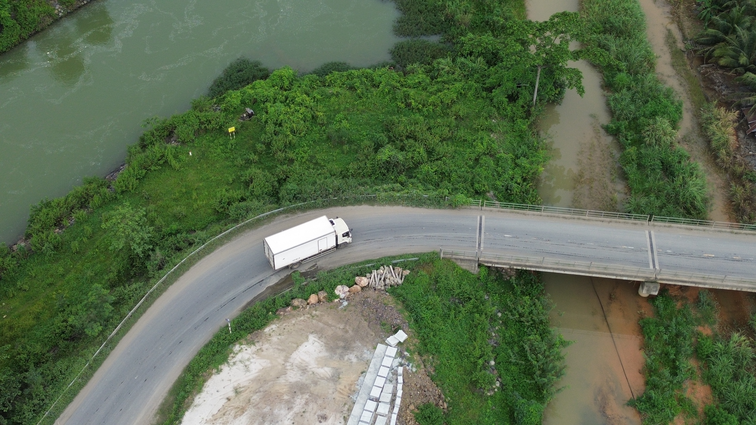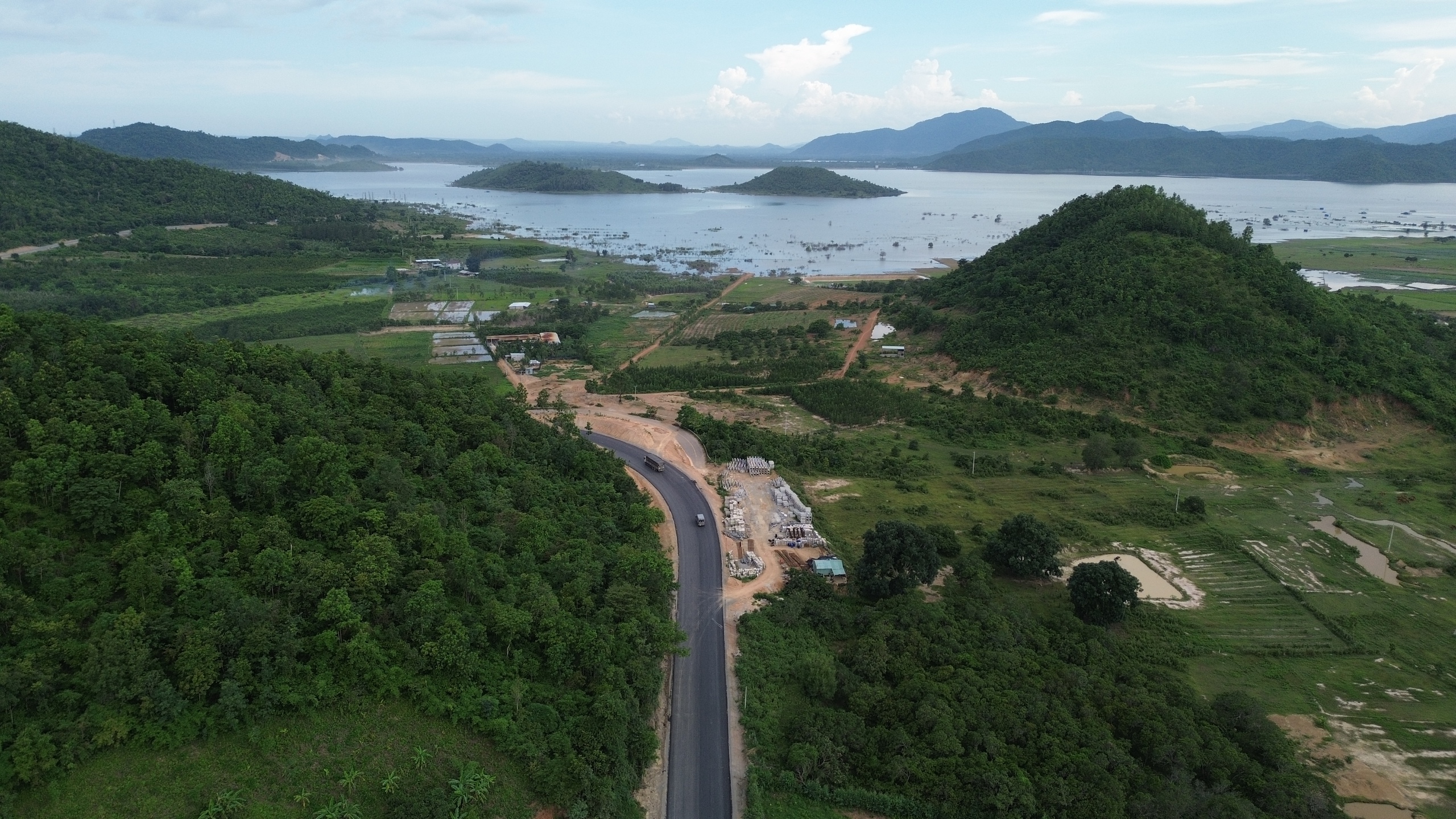 Cầu vượt đoạn qua hồ Đại Ninh đã thi công cơ bản hoàn thành, đang chờ khớp nối với tuyến chính đang thi công.