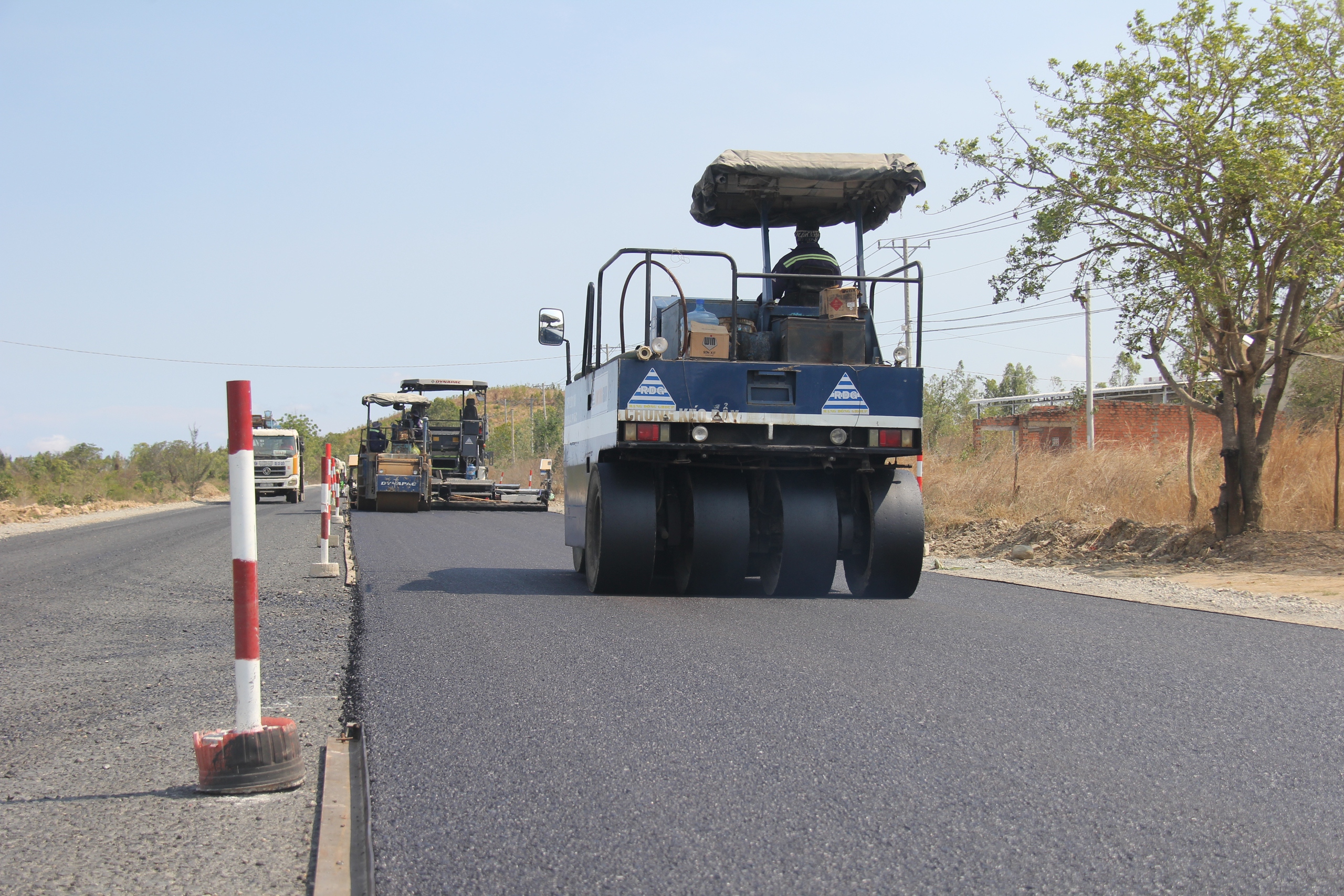 Trên đèo Đại Ninh nhiều mũi thi công đang gấp rút thi công san đồi, bạt núi để nắn chỉnh tuyến tại các đoạn đường cong, cua gấp.