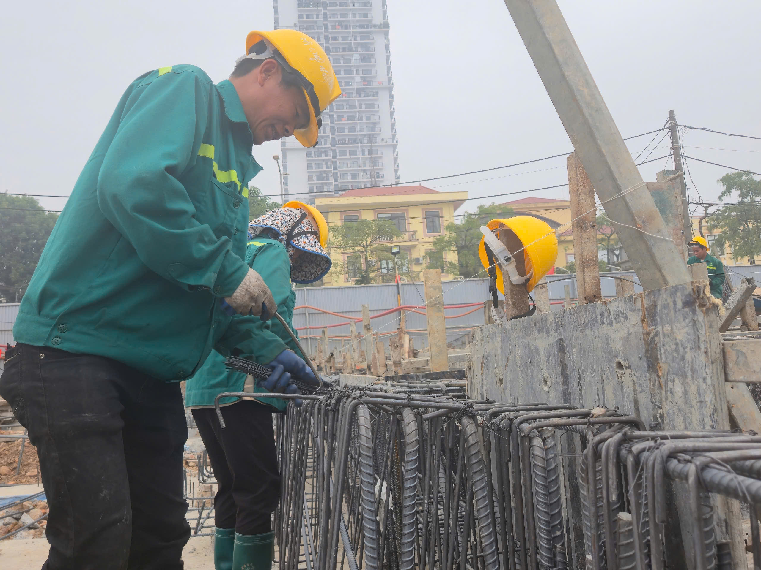 Công nhân Hoàng Văn Sơn chia sẻ: "Tranh thủ thời tiết thuận lợi, chúng tôi sẵn sàng làm thêm kể cả ngày nghỉ, giờ nghỉ, tăng ca, kíp để đưa dự án về đích sớm".