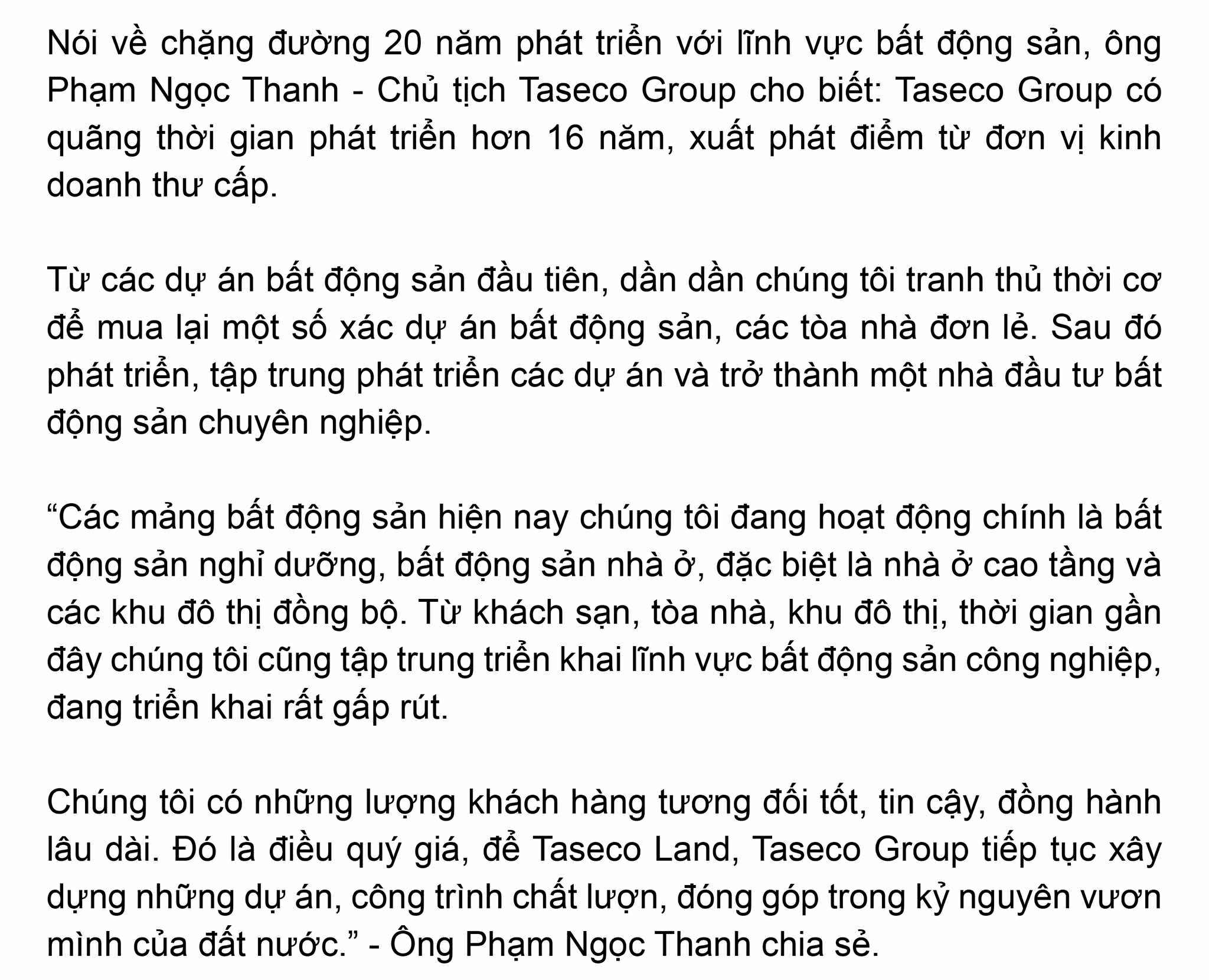 Bất động sản là lĩnh vực chủ lực quan trọng trong thành tích của Taseco nhân dịp 20 năm thành lập và vinh dự đón nhận Huân chương Lao động Hạng Nhì.