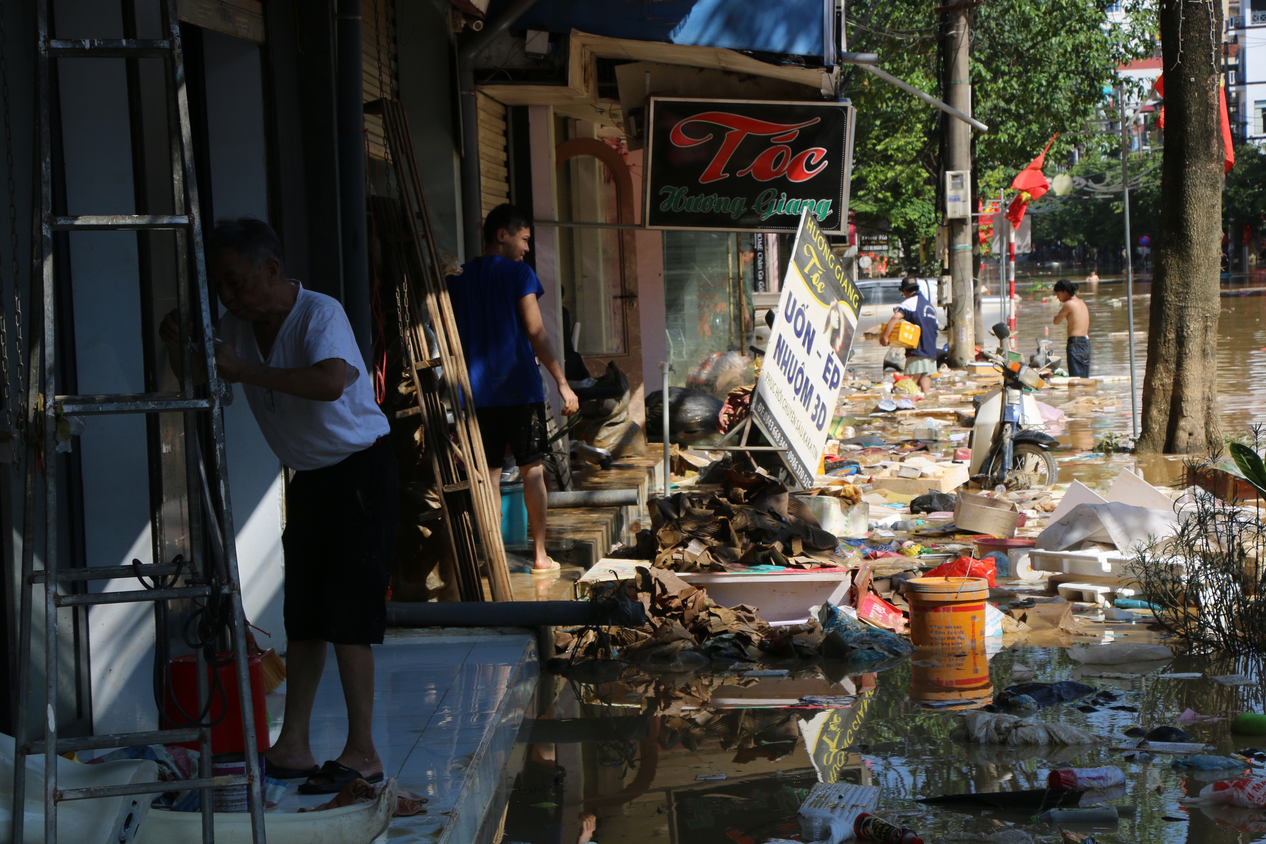Ngay khi nước rút, chính quyền và người dân đã khẩn trương ra quân vệ sinh, khơi thông cống rãnh, thu gom rác để nhanh chóng khôi phục đời sống, ổn định sản xuất. Không khí khẩn trương hiện rõ trên từng con phố, thể hiện quyết tâm của cả cộng đồng trong những ngày đầu sau thiên tai.