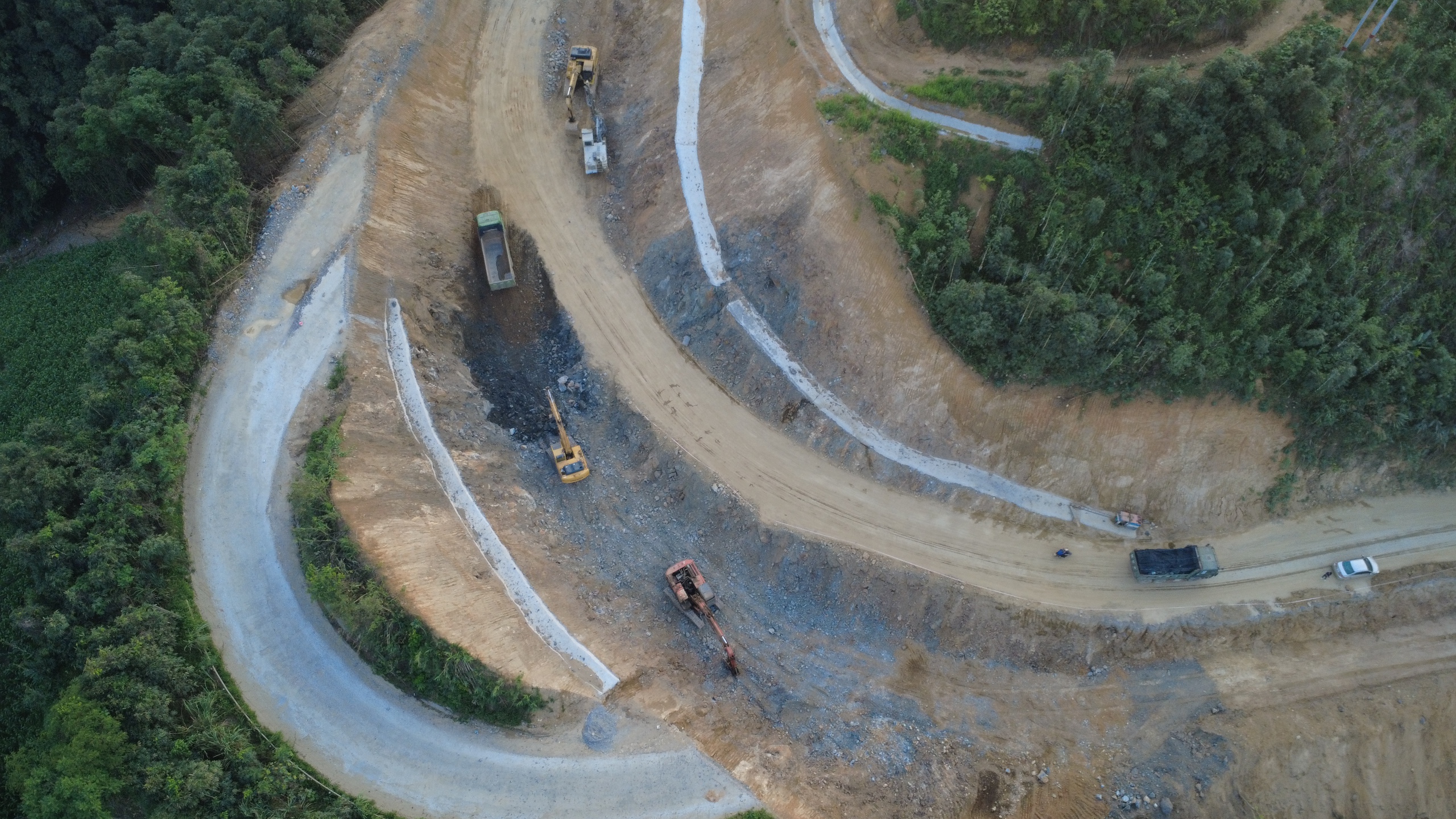 Theo ghi nhận PV Báo Xây dựng ngày 6/5, dù trời nắng gắt, nhiều công nhân cùng máy móc, thiết bị miệt mài làm việc. Các công nhân tập trung lu nền, làm ta luy dương, một số máy móc múc đất lên xe tải chở đi đổ... nhằm sớm đưa công trình về đích.
