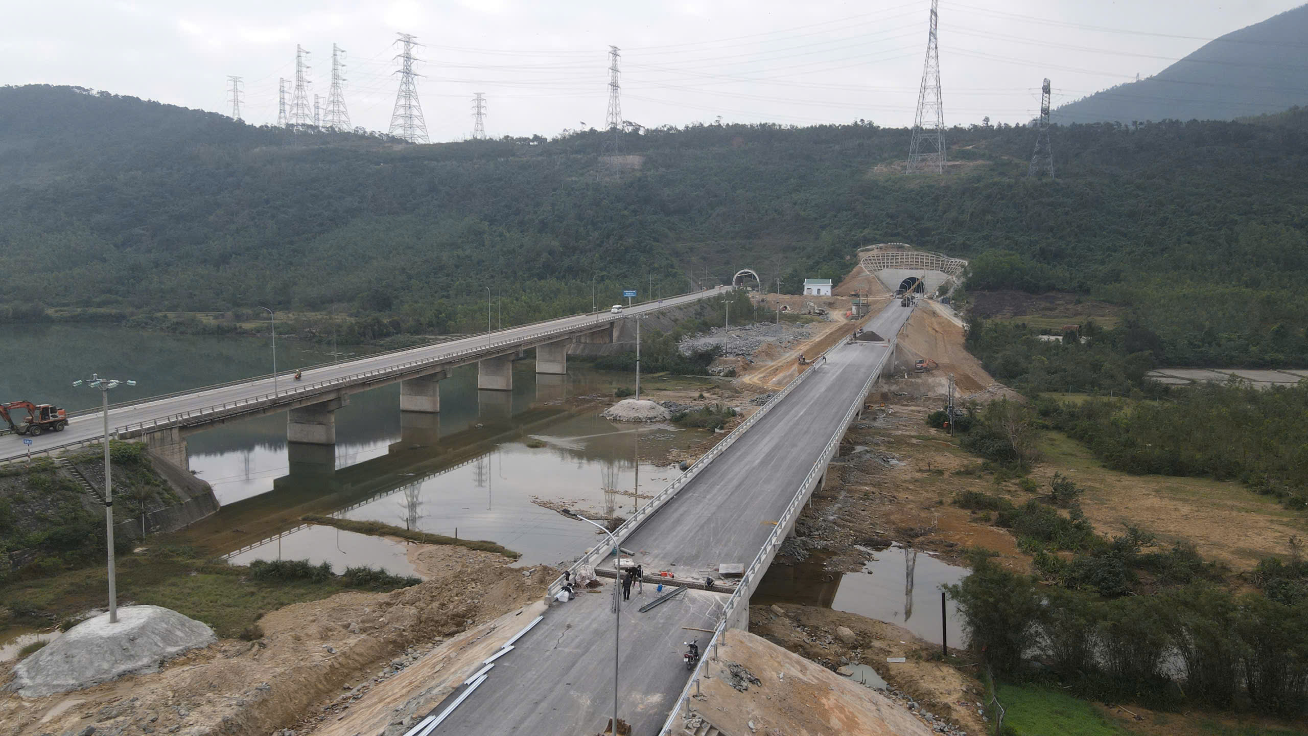 Hiện, công tác thi công hệ thống thoát nước dọc, bù vênh bằng cấp phối đá dăm và thảm bê tông nhựa trên đường quốc lộ cũ đạt khoảng 95%. Ở phía Nam hầm, hệ thống thoát nước ngang đã hoàn thành; nền đường cấp phối đá dăm tuyến chính đạt 95%, hệ thống thoát nước dọc đạt khoảng 80%. Giá trị thực hiện phần đường đạt 51,84/55,3 tỷ đồng (97%).
