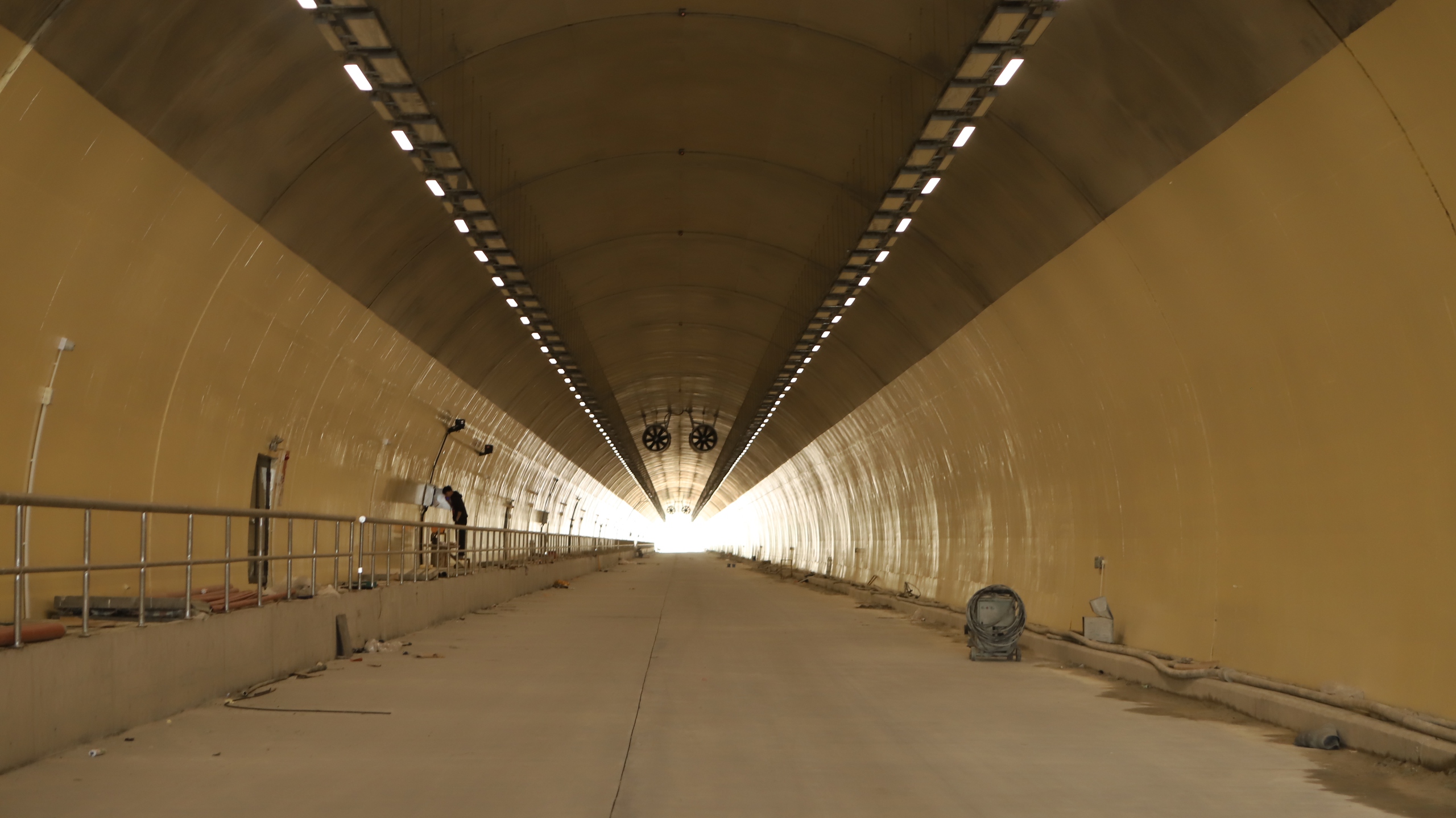 Phía trong hầm đang được nhà thầu thi công các hạng mục như hệ thống dây cáp, vệ sinh mặt đường...