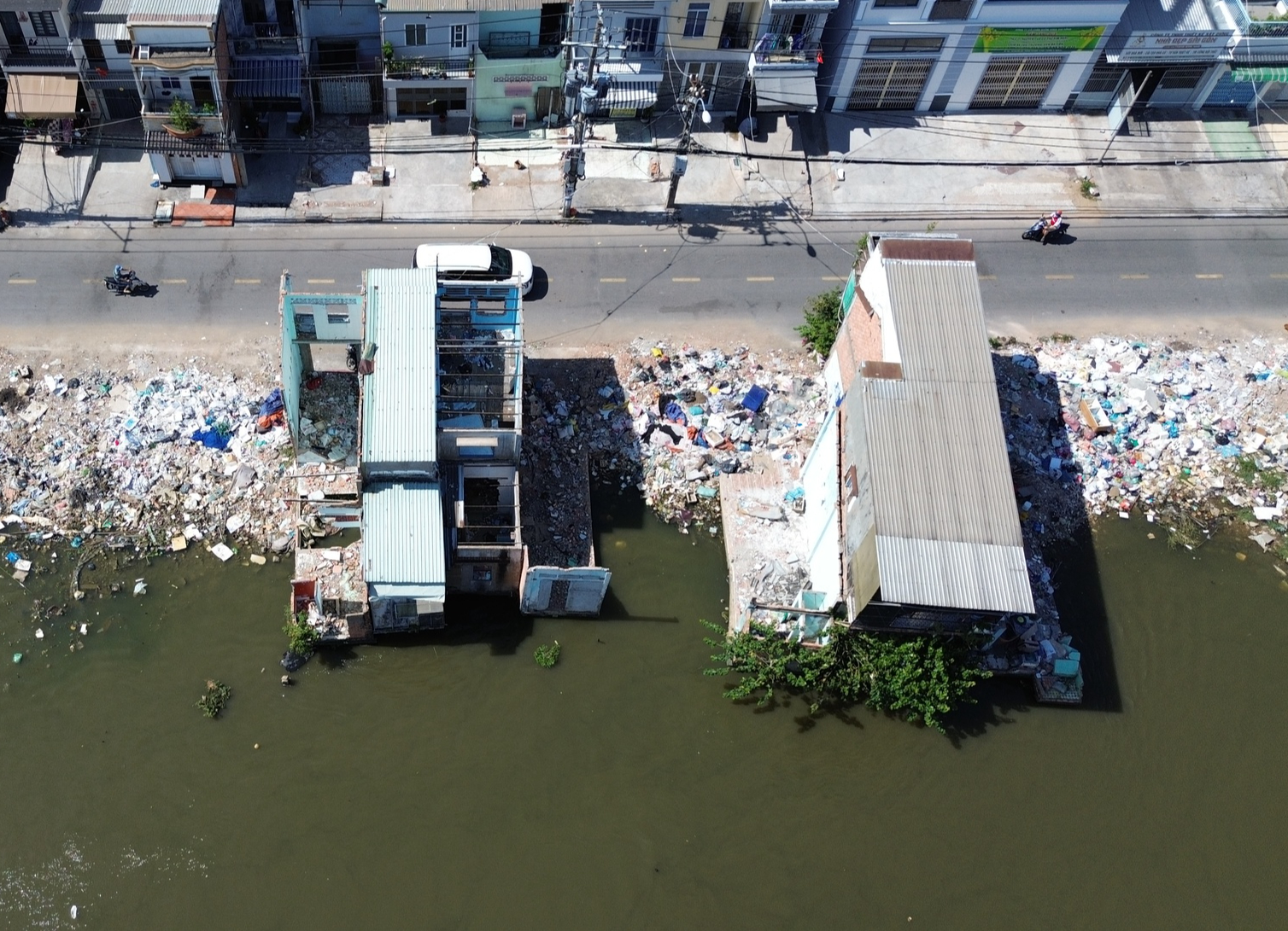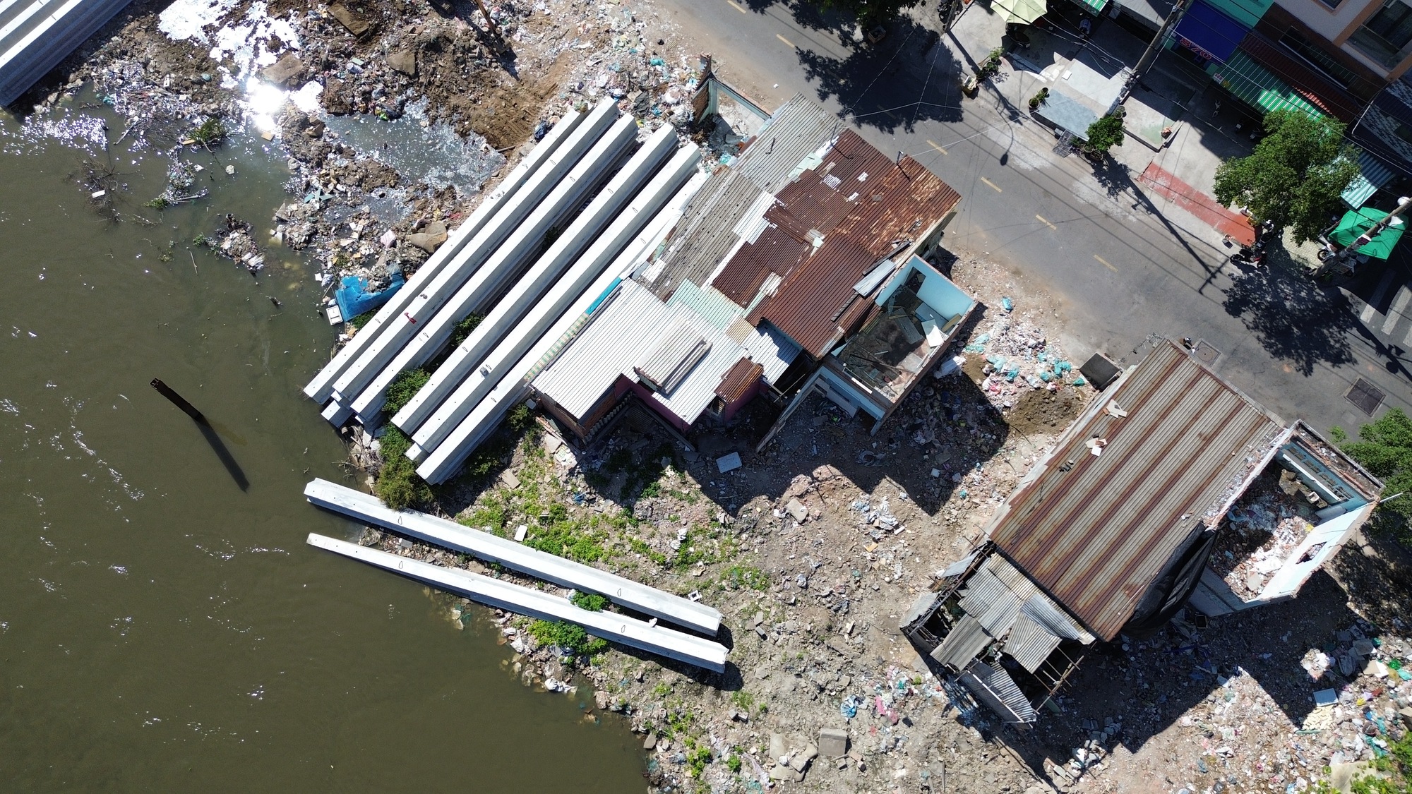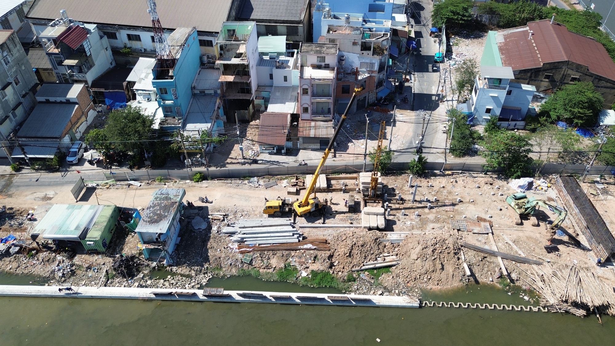 Trong khi đó, không ít hộ dân khác vẫn sinh hoạt bình thường do chưa hoàn tất việc bàn giao mặt bằng, tạo nên khung cảnh đan xen giữa công trường thi công và khu dân cư hiện hữu.