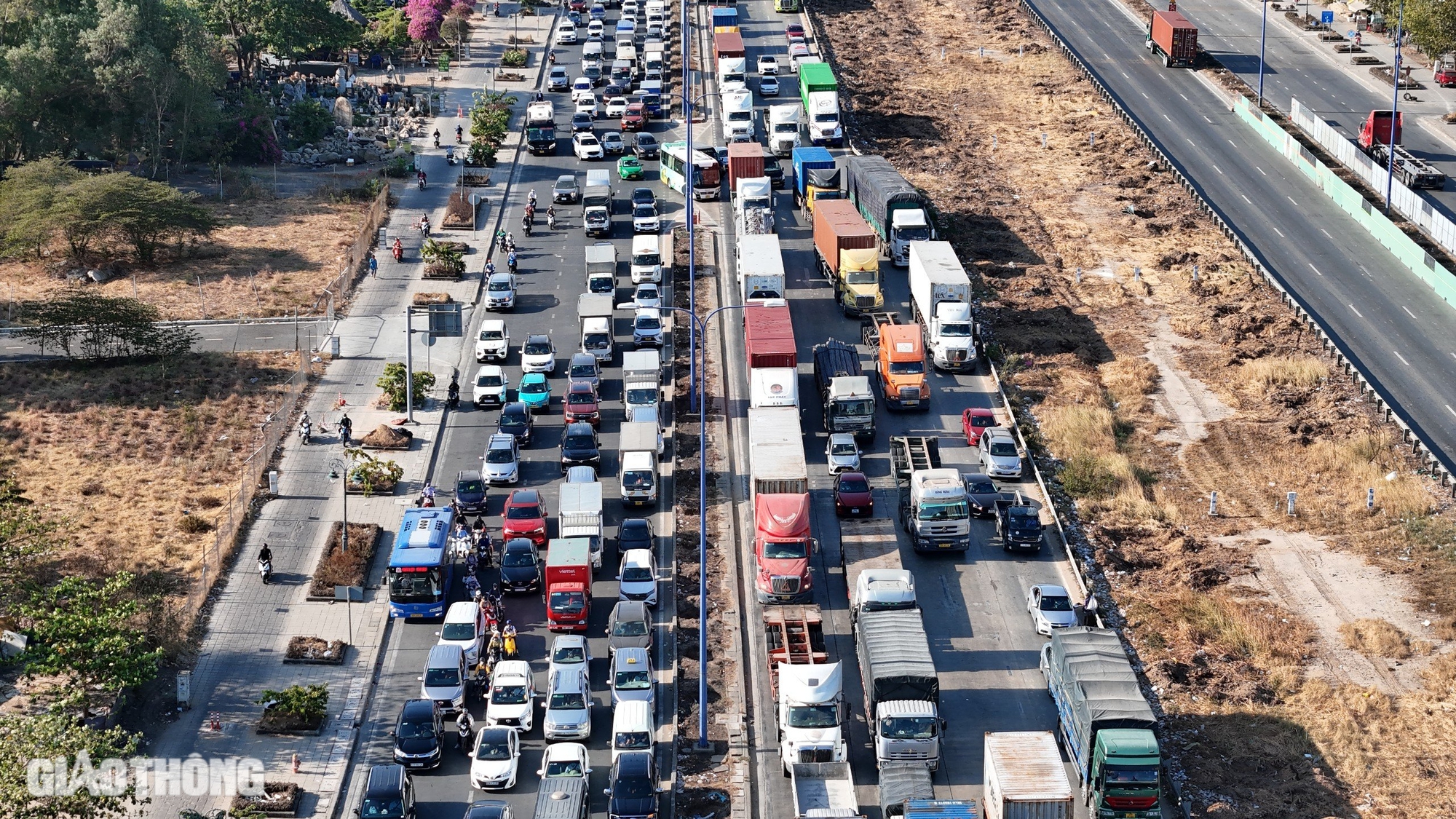 Tuy nhiên, vào khung giờ cao điểm hoặc ngày cuối tuần, lễ, Tết... đoạn đường dẫn này luôn trong tình trạng kẹt xe nghiêm trọng. Phương tiện phải nối hàng dài, nhích từng chút một. Dù đoạn đường chỉ hơn 3km nhưng nhiều thời điểm, tài xế phải "chôn chân", tốn hàng giờ đồng hồ để lên được cao tốc.