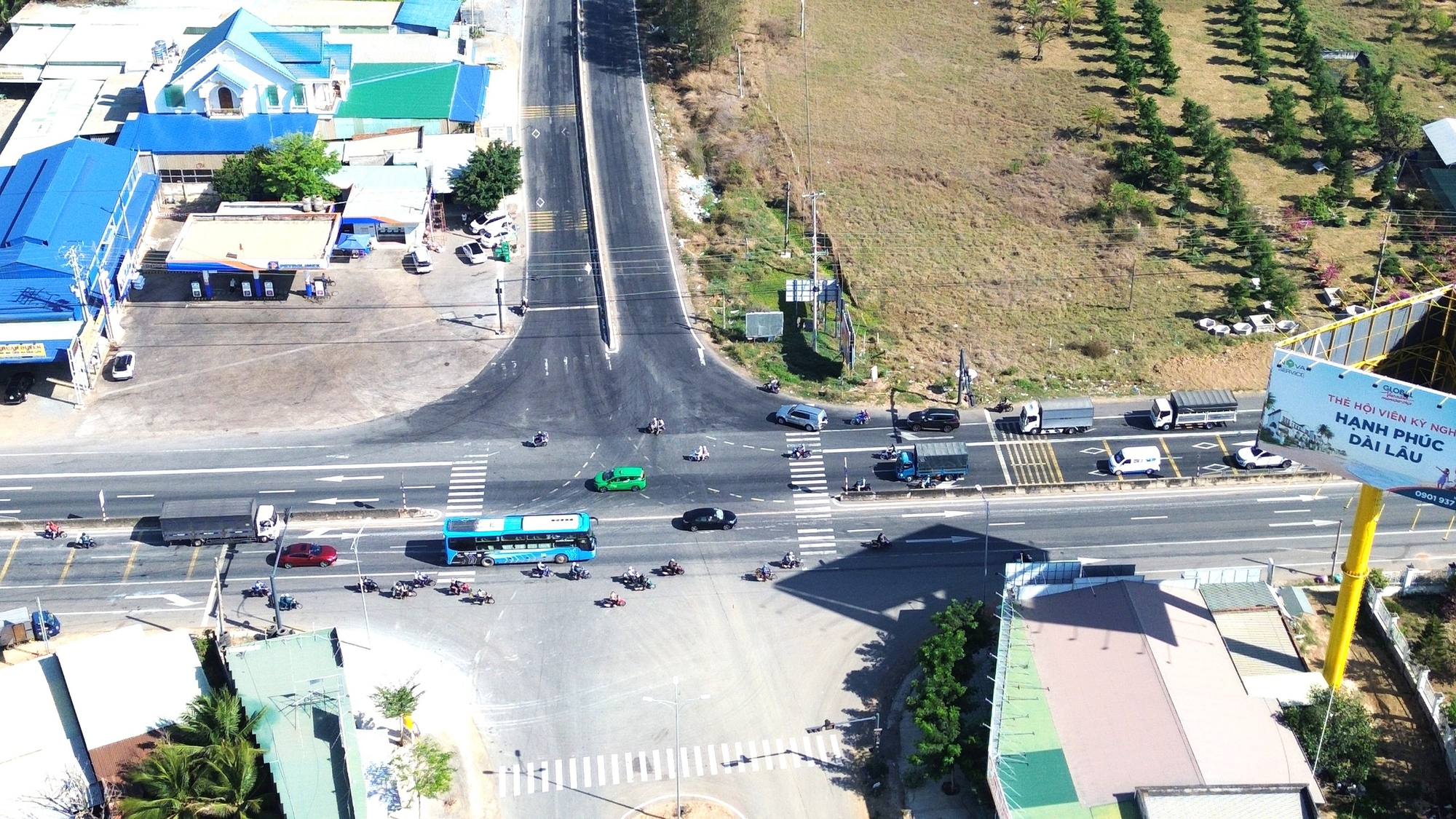 Tuyến đường Hàm Kiệm - Tiến Thành có chiều dài 7,7km, tổng mức đầu tư gần 420 tỷ đồng, khởi công cuối năm 2021. Đến nay dự án đã được thi công hoàn thành chuẩn bị khánh thành. (Trong ảnh là nút giao kết nối đường dẫn cao tốc Phan Thiết - Dầu Giây qua xã Hàm Kiệm, Hàm Thuận Nam).
