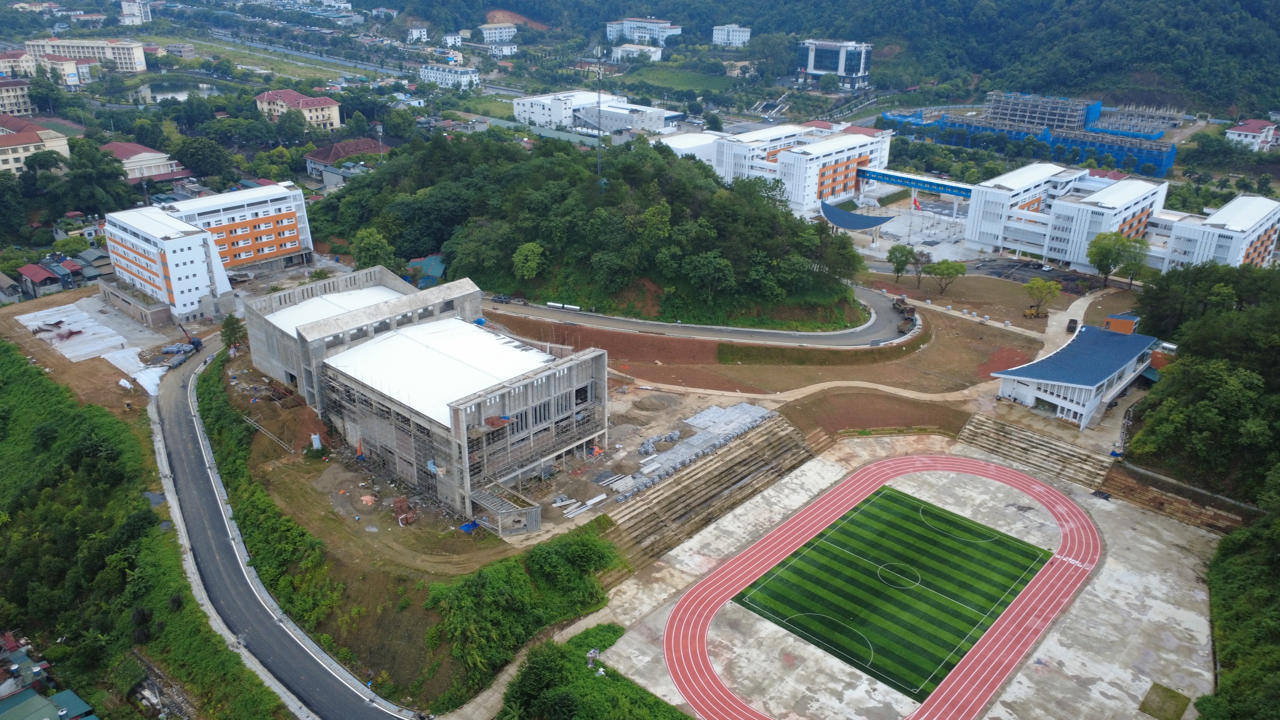 Ông Phan Văn Hưng, Phó Giám đốc Ban Quản lý dự án đầu tư xây dựng tỉnh Lào Cai cho biết: “Hạng mục phòng cháy chữa cháy đang được lắp máy bơm, họng nước ngoài nhà bảo đảm an toàn cho toàn bộ công trình. Toàn bộ khối nhà A, B, C cao 5 tầng đã hoàn thành phần xây dựng. Công nhân đang lắp đặt hệ thống điều hòa, bàn giao dần cho nhà trường để chuẩn bị nội thất. Chúng tôi xác định đây là công trình trọng điểm, mang ý nghĩa chiến lược về giáo dục - đào tạo cho tỉnh. Đến giữa tháng 7/2025, công trình đã hoàn thành trên 98% khối lượng, và đang bước vào giai đoạn hoàn thiện nội thất, sẵn sàng cho năm học mới".