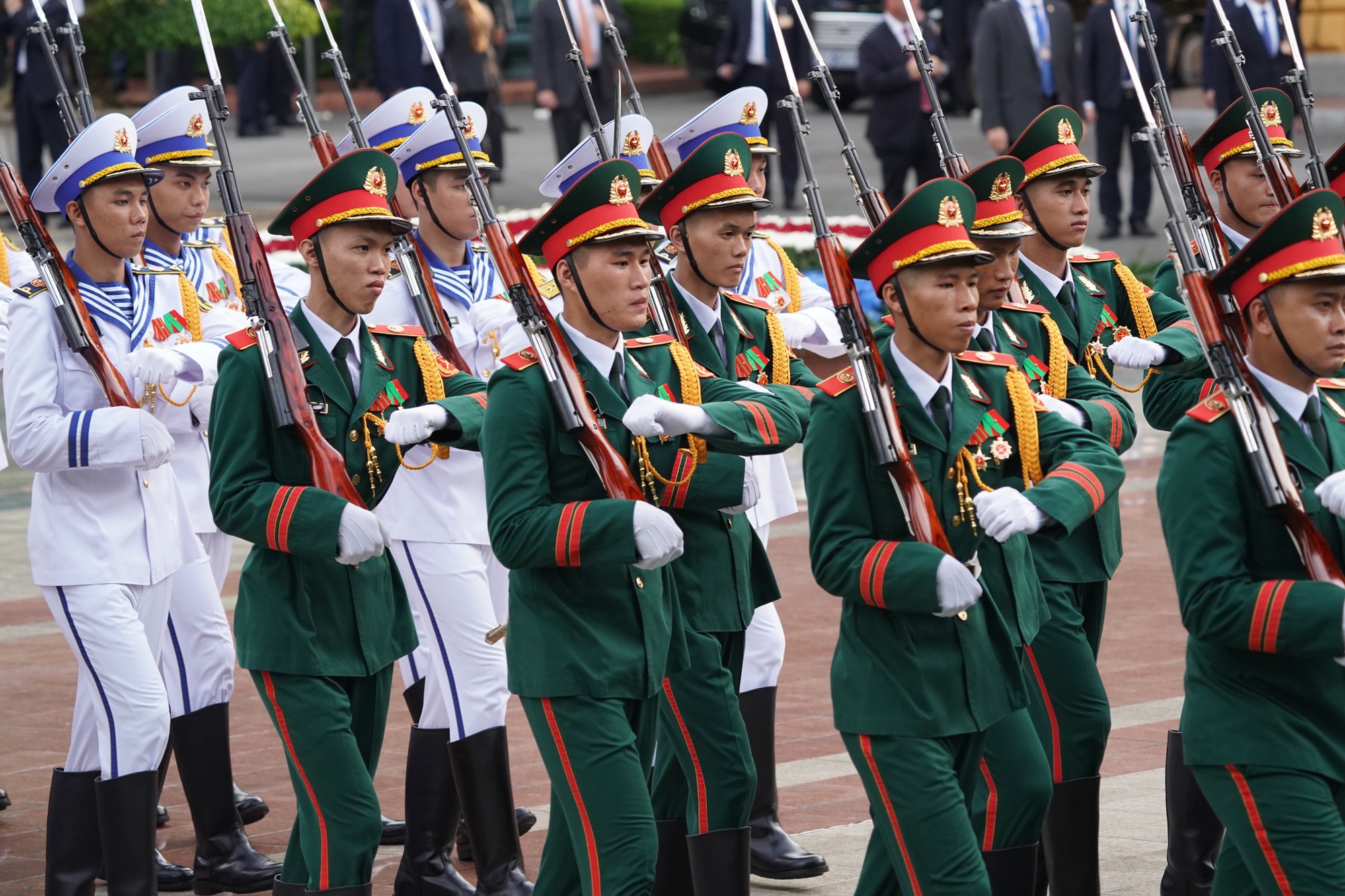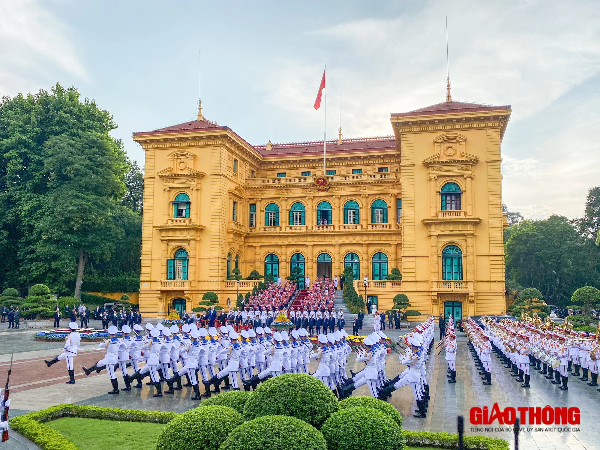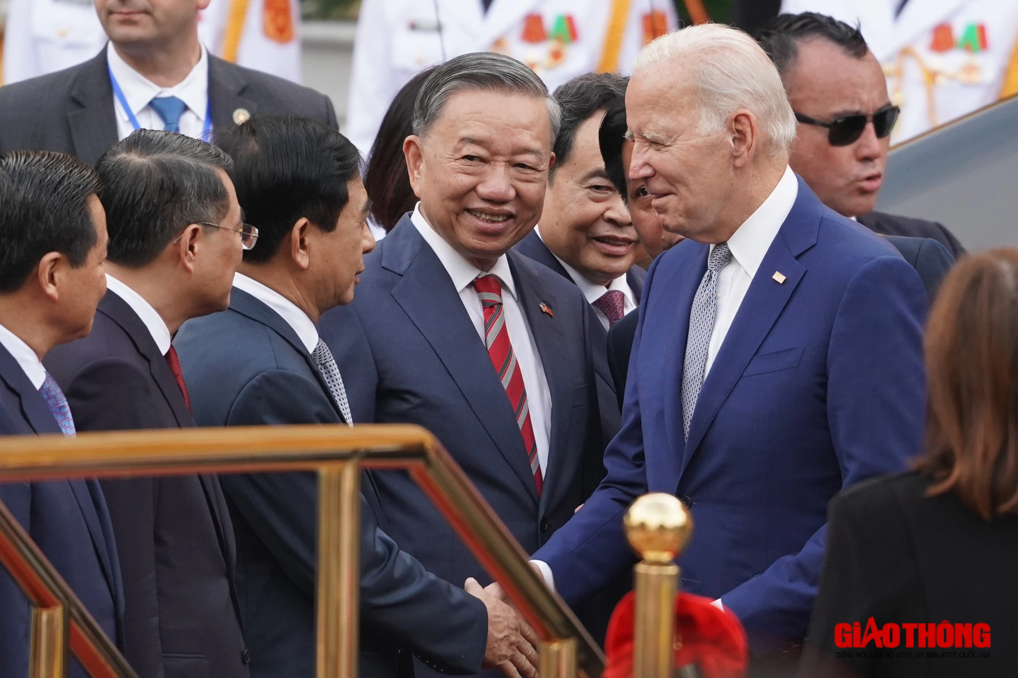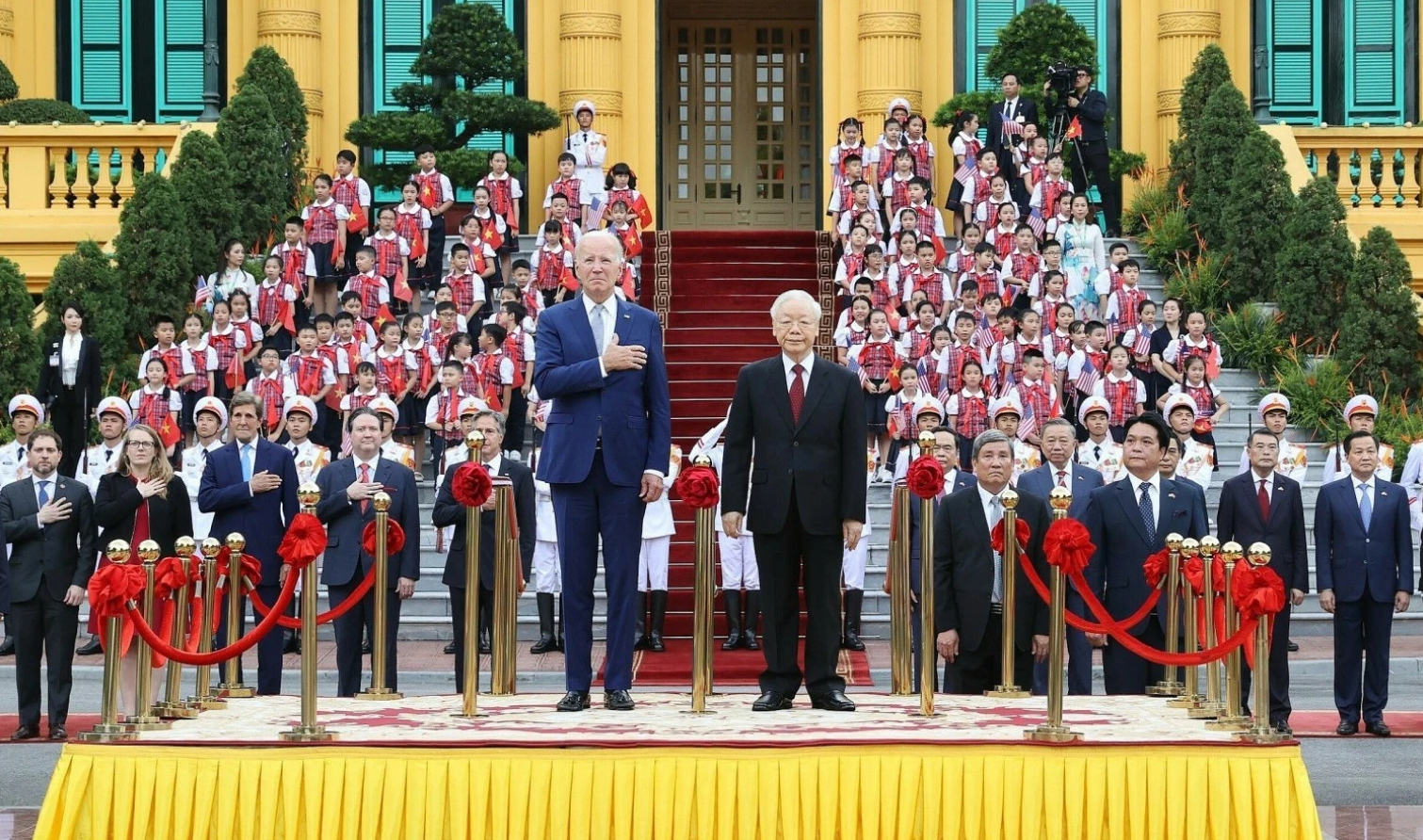 Lễ đón chính thức Tổng thống Hoa Kỳ Joe Biden diễn ra tại Phủ chủ tịch theo nghi lễ cấp Nhà nước do Tổng Bí thư Nguyễn Phú Trọng chủ trì. Ảnh: Chí Hùng.