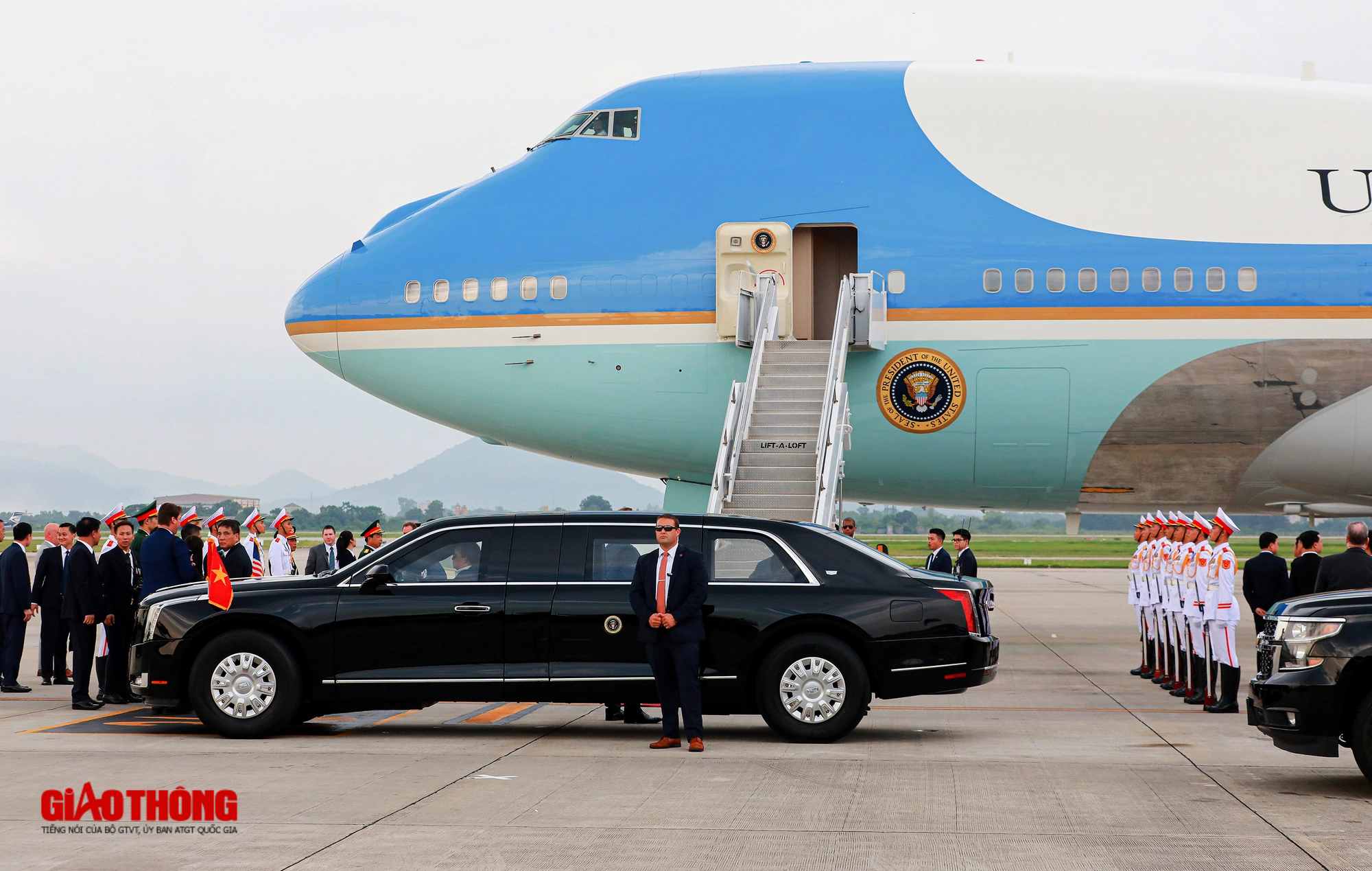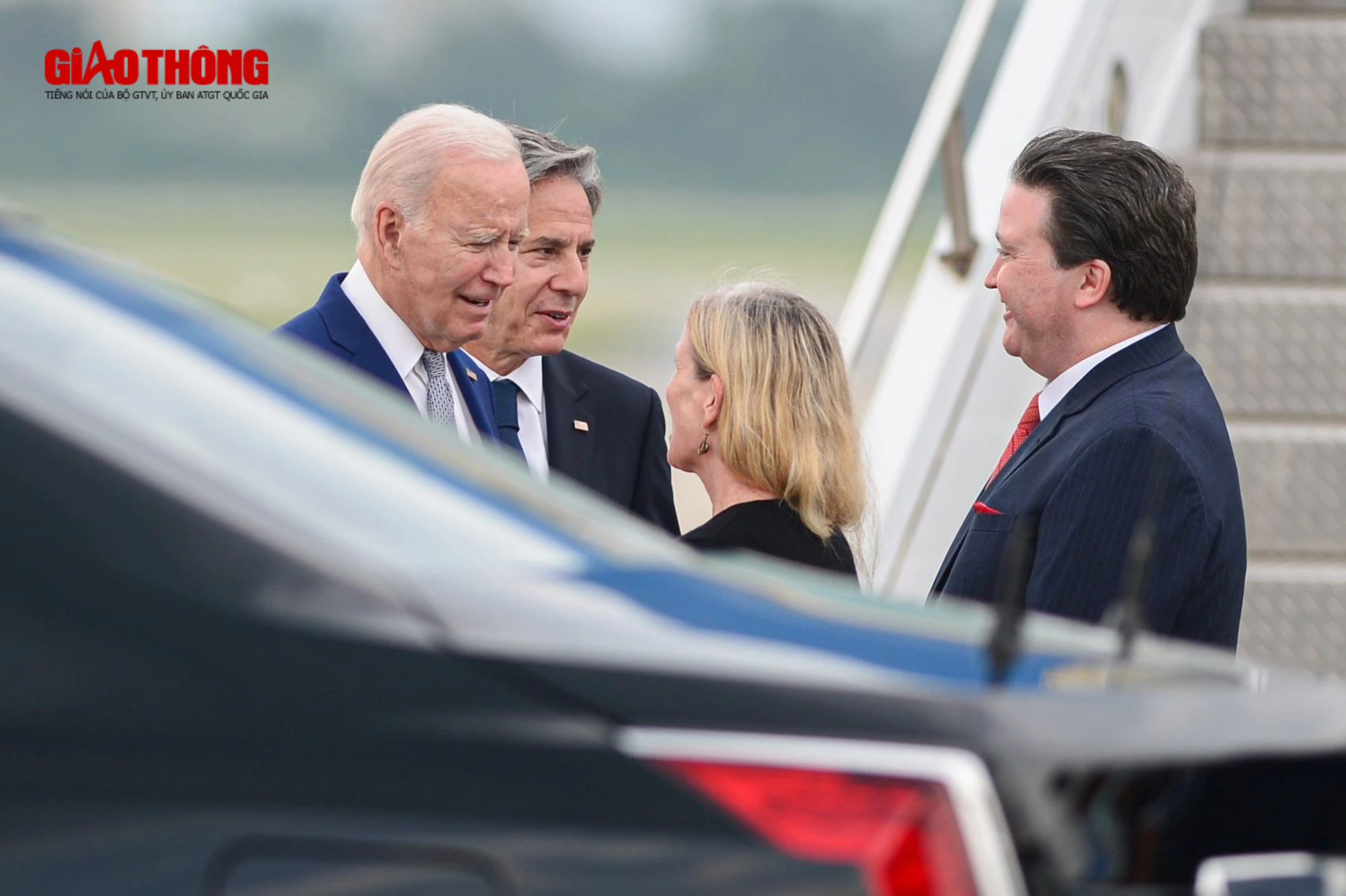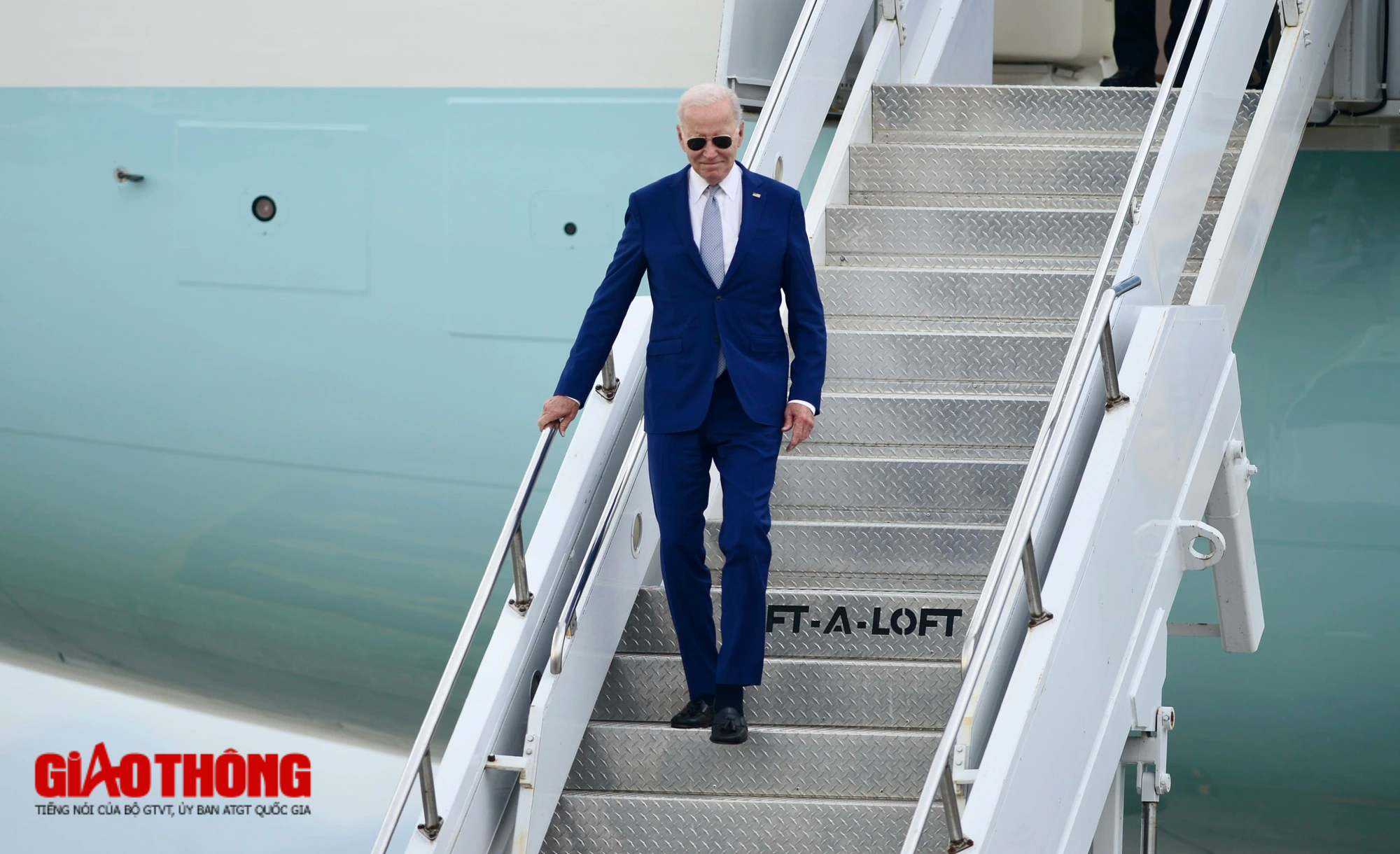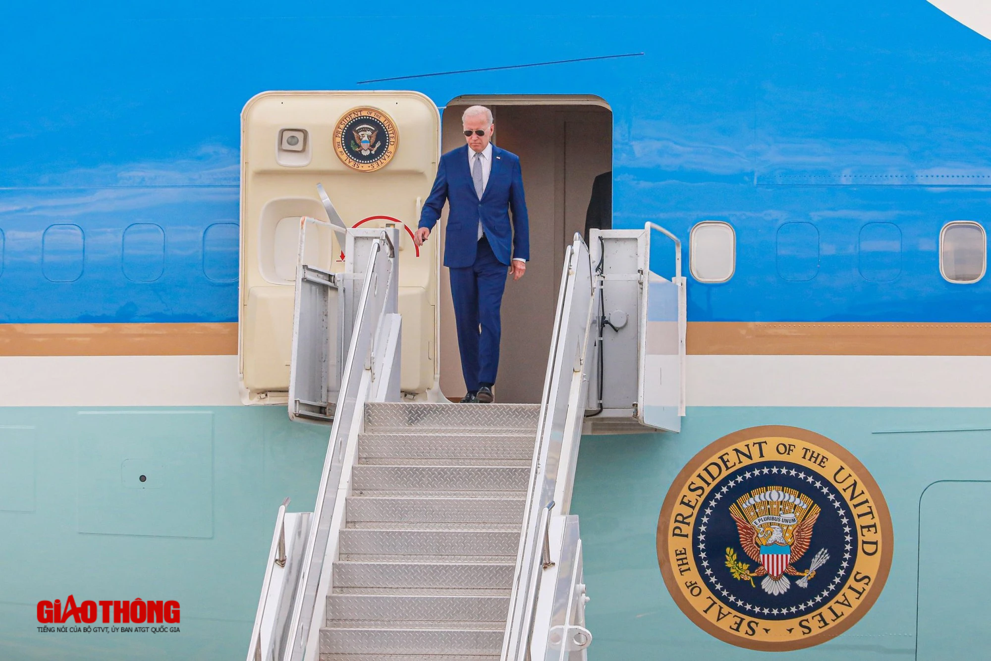Trước đó, lúc hơn 16h, chuyên cơ Không lực một chở Tổng thống Hoa Kỳ hạ cánh xuống sân bay Nội Bài chiều 10/9. Chuyến thăm có ý nghĩa đặc biệt, diễn ra trong bối cảnh Việt Nam và Hoa Kỳ kỷ niệm 10 năm xác lập quan hệ Đối tác toàn diện (2013-2023) và đánh dấu lần đầu tiên cả Tổng thống, Phó tổng thống Hoa Kỳ thăm Việt Nam trong một nhiệm kỳ. Ảnh: Tạ Hải.