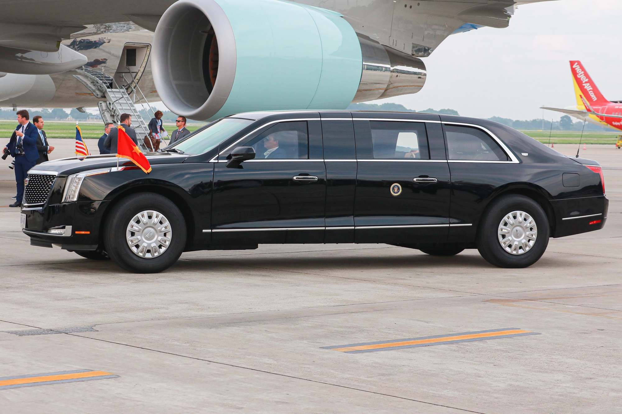 16h51 ngày 10/9, sau khi đáp chuyến bay đến sân bay quốc tế Nội Bài, Tổng thống Hoa Kỳ đến Phủ chủ tịch dự lễ đón chính thức do Tổng bí thư Nguyễn Phú Trọng chủ trì. Ảnh: Chí Hùng.