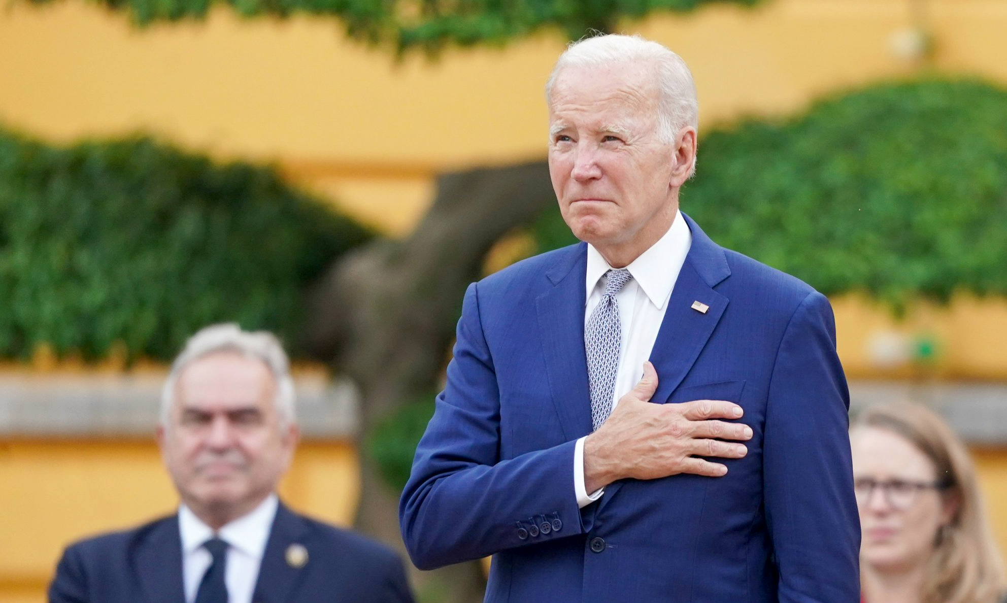 Tổng thống Hoa Kỳ Joe Biden và Tống bí thư Nguyễn Phú Trọng tại lễ đón chiều 10/9. Ảnh: TTXVN.