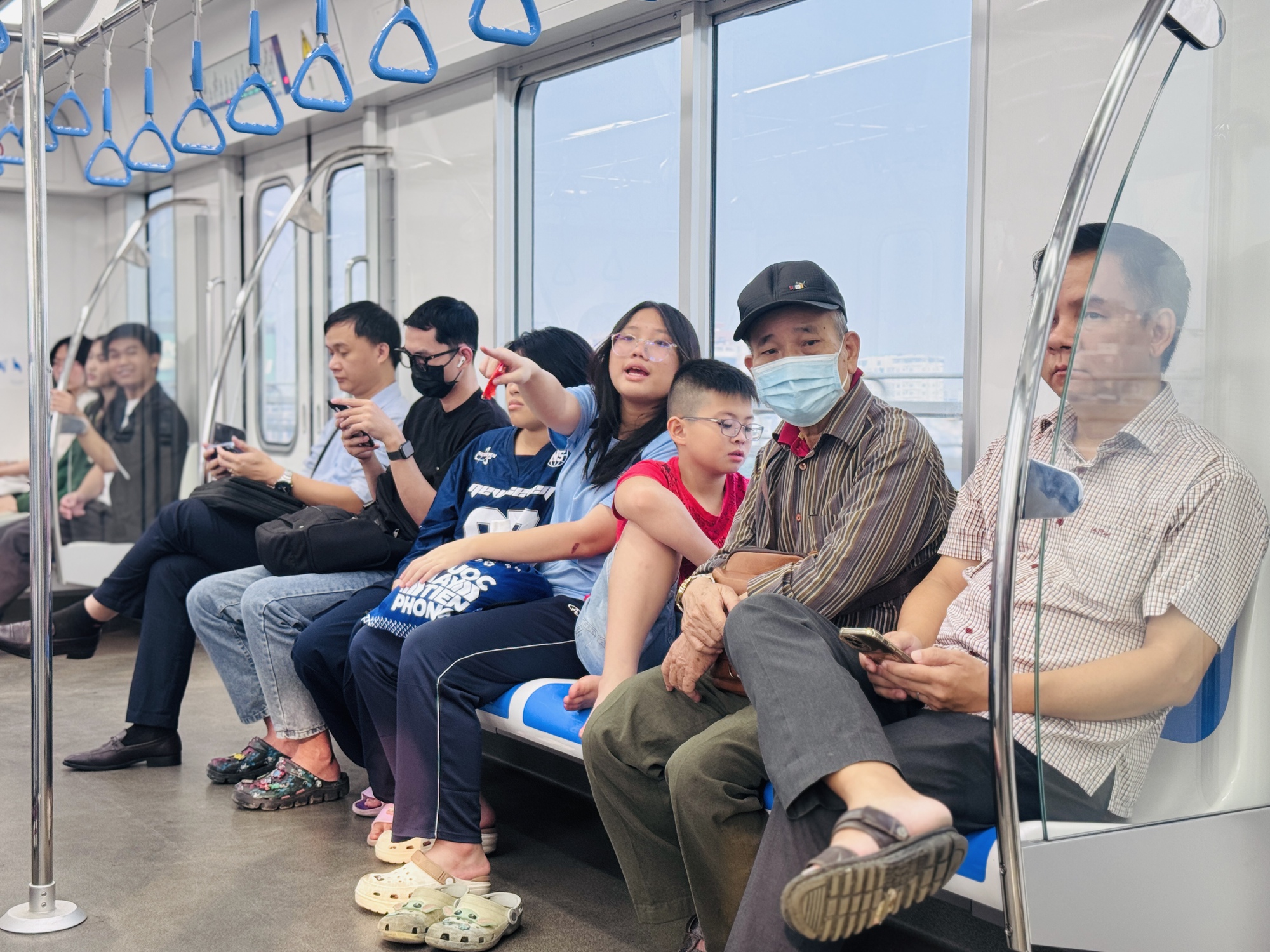 Bên cạnh đó, nhiều người dân tranh thủ đưa người thân đi trải nghiệm metro.