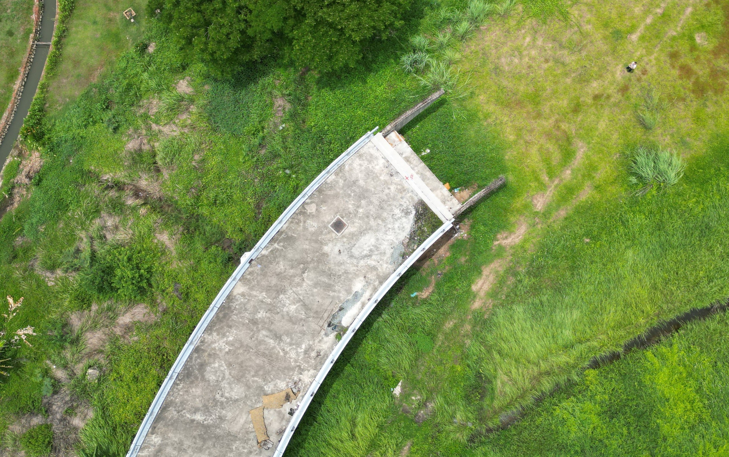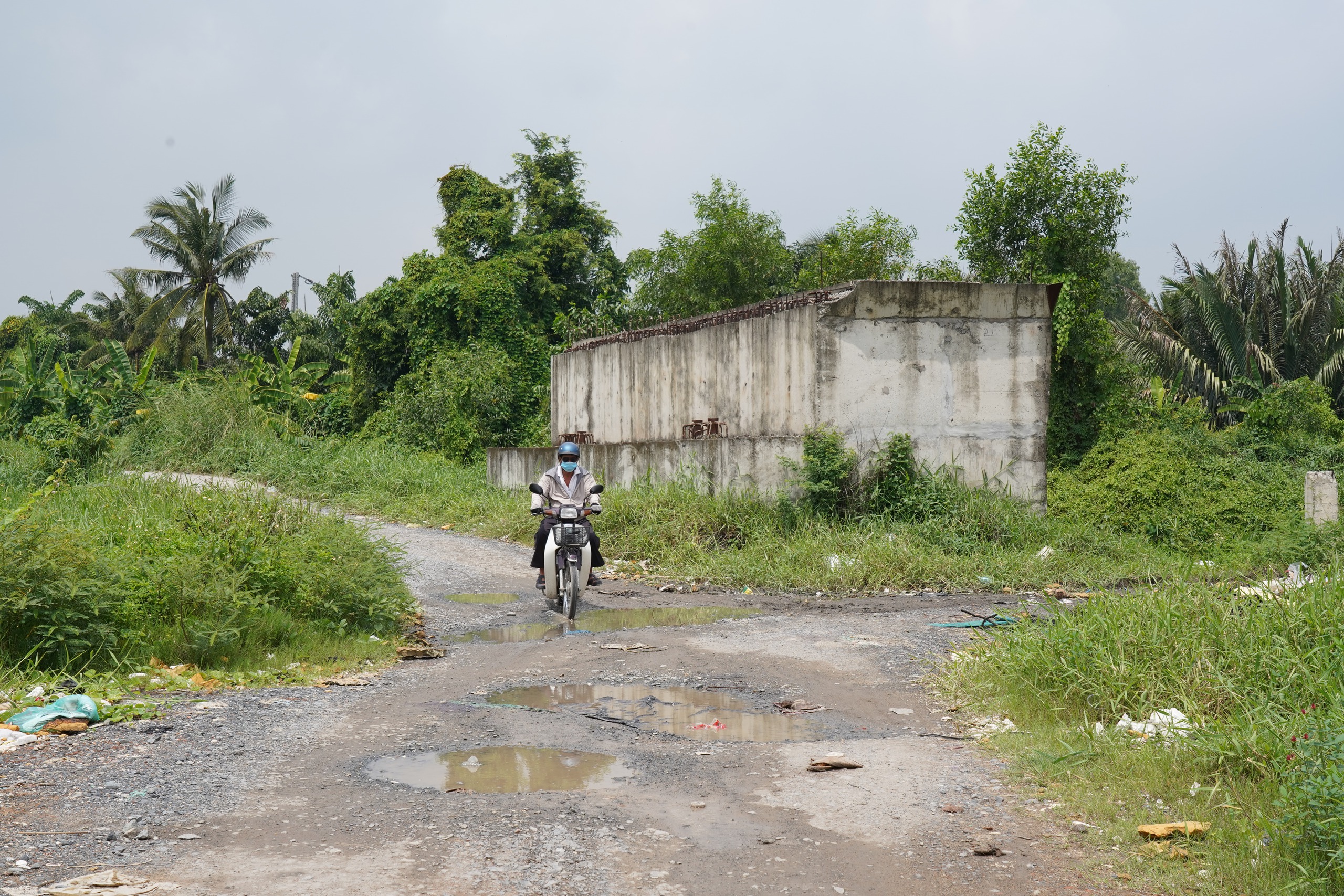 Sau thời gian dài ngừng thi công, những hạng mục đã được thực hiện bị xuống cấp, rỉ sét. Cỏ dại mọc um tùm, rác thải cũng bủa vây khu vực.