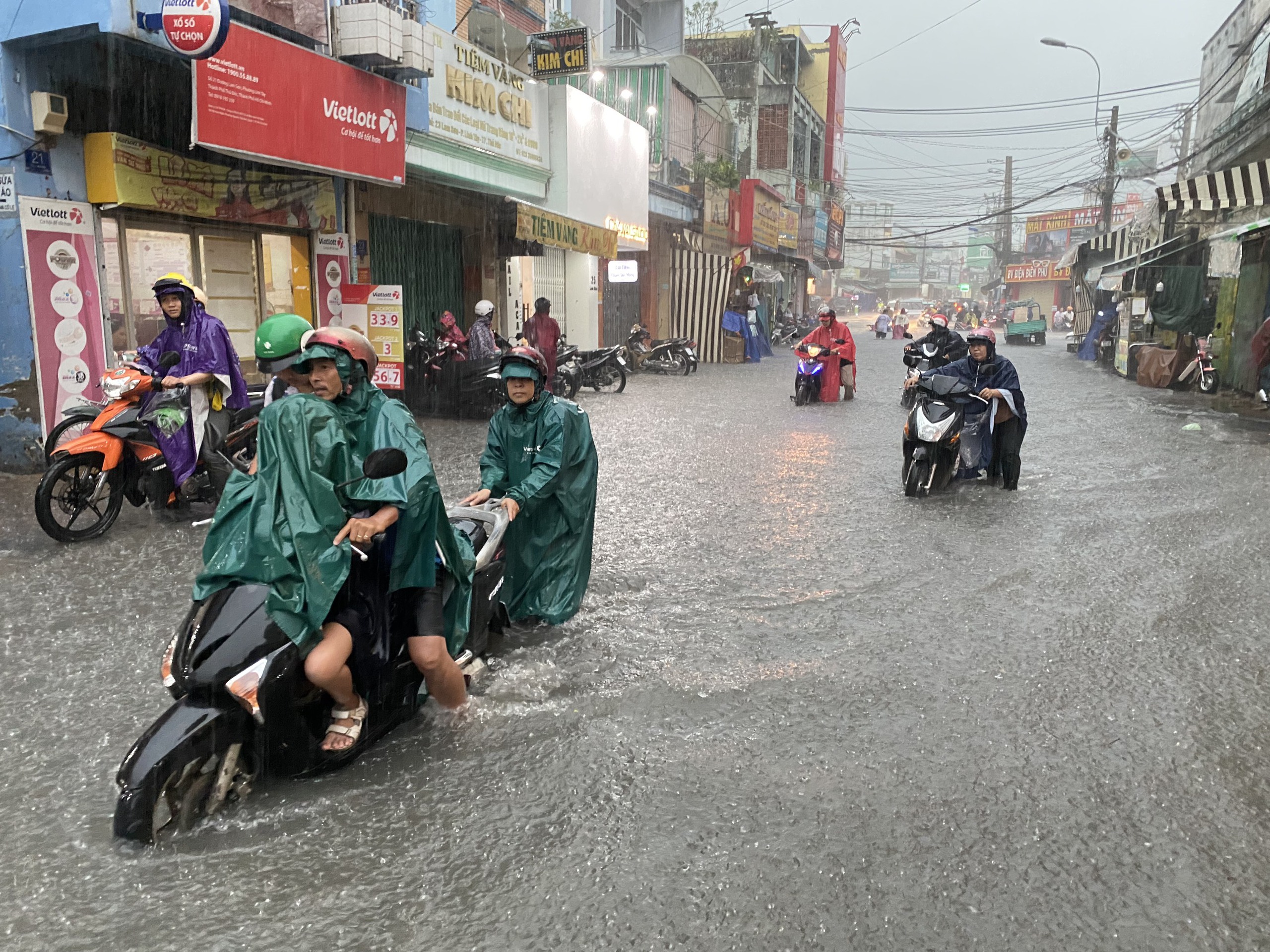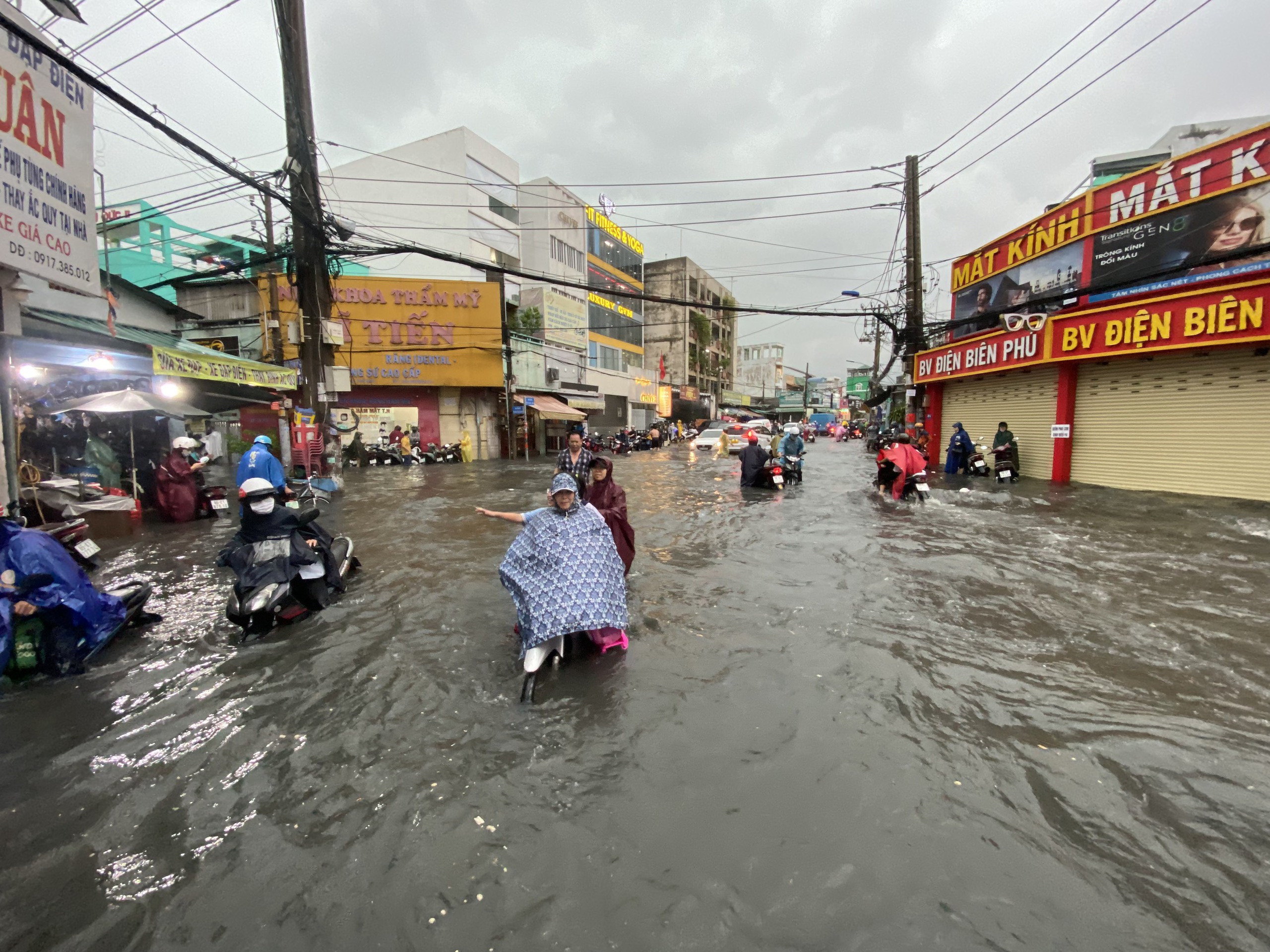 Các quận Gò Vấp, Phú Nhuận, Tân Bình... đều có mưa lớn. Một số tuyến đường tại quận Gò Vấp như Nguyễn Văn Khối, Phạm Văn Chiêu, Lê Đức Thọ… cũng xảy ra tình trạng ngập đường, người dân lưu thông khó khăn.