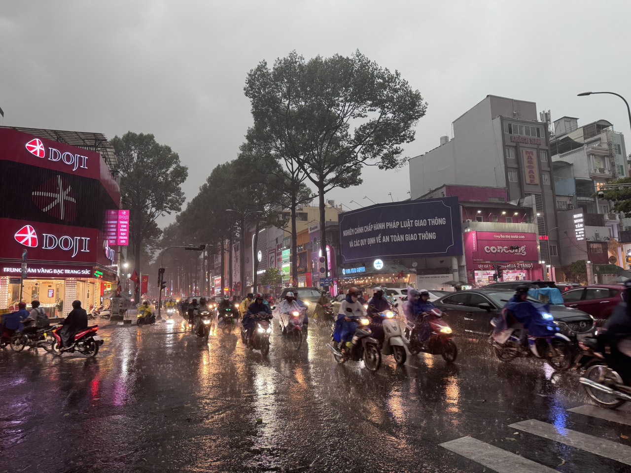Mưa lớn, nặng hạt kèm theo gió mạnh ở khu vực quận 3, 10, 11, Tân Bình, Tân Phú, Gò Vấp, TP Thủ Đức...