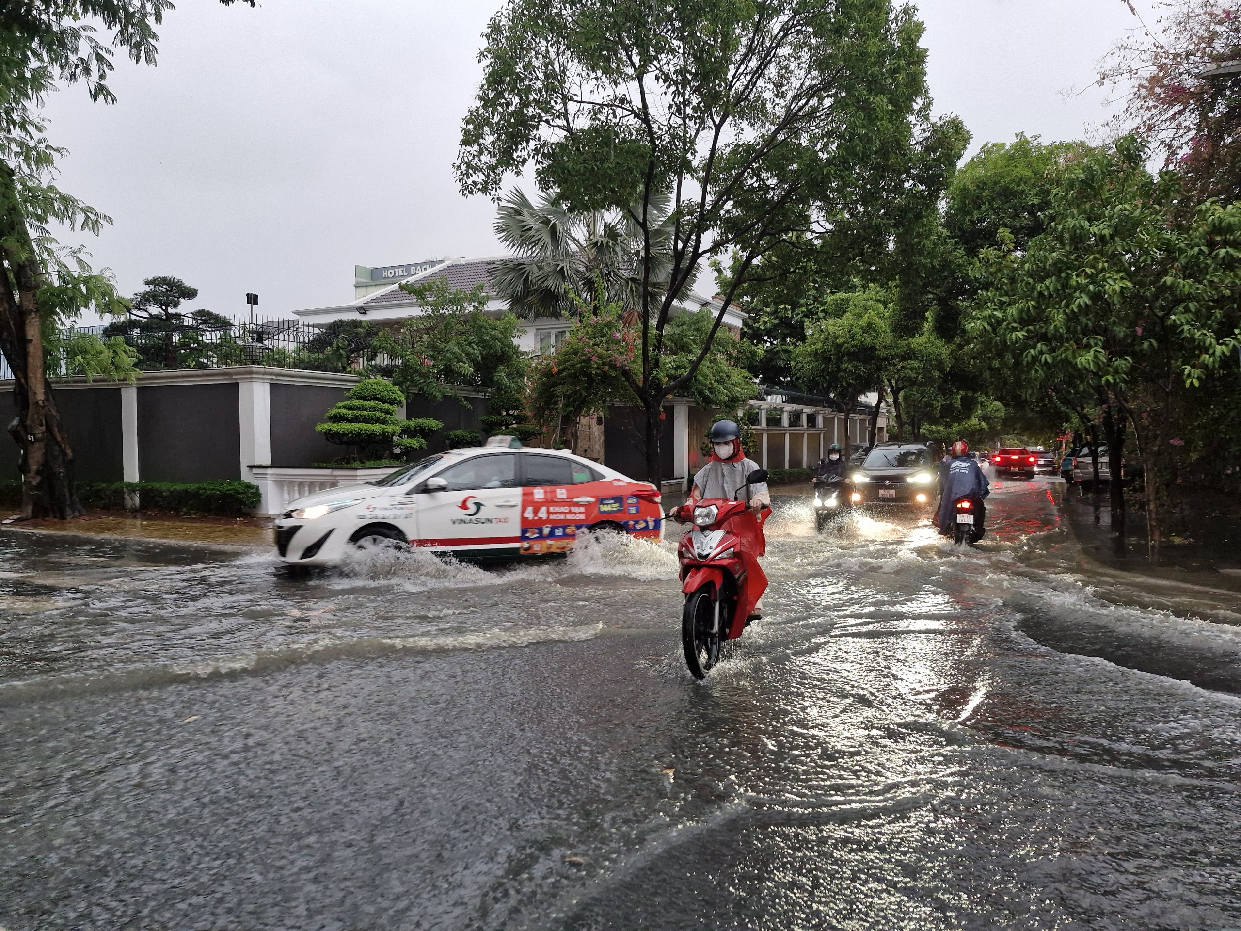 “Khu vực này cứ mưa xuống là ngập, mưa nhỏ thì ngập ít, mưa to thì ngập nhiều và ngập rất nhanh, tôi mới chạy một đoạn đã thấy nước ngang bánh xe", bà Phan Nga, ngụ gần chợ Thủ Đức nói.