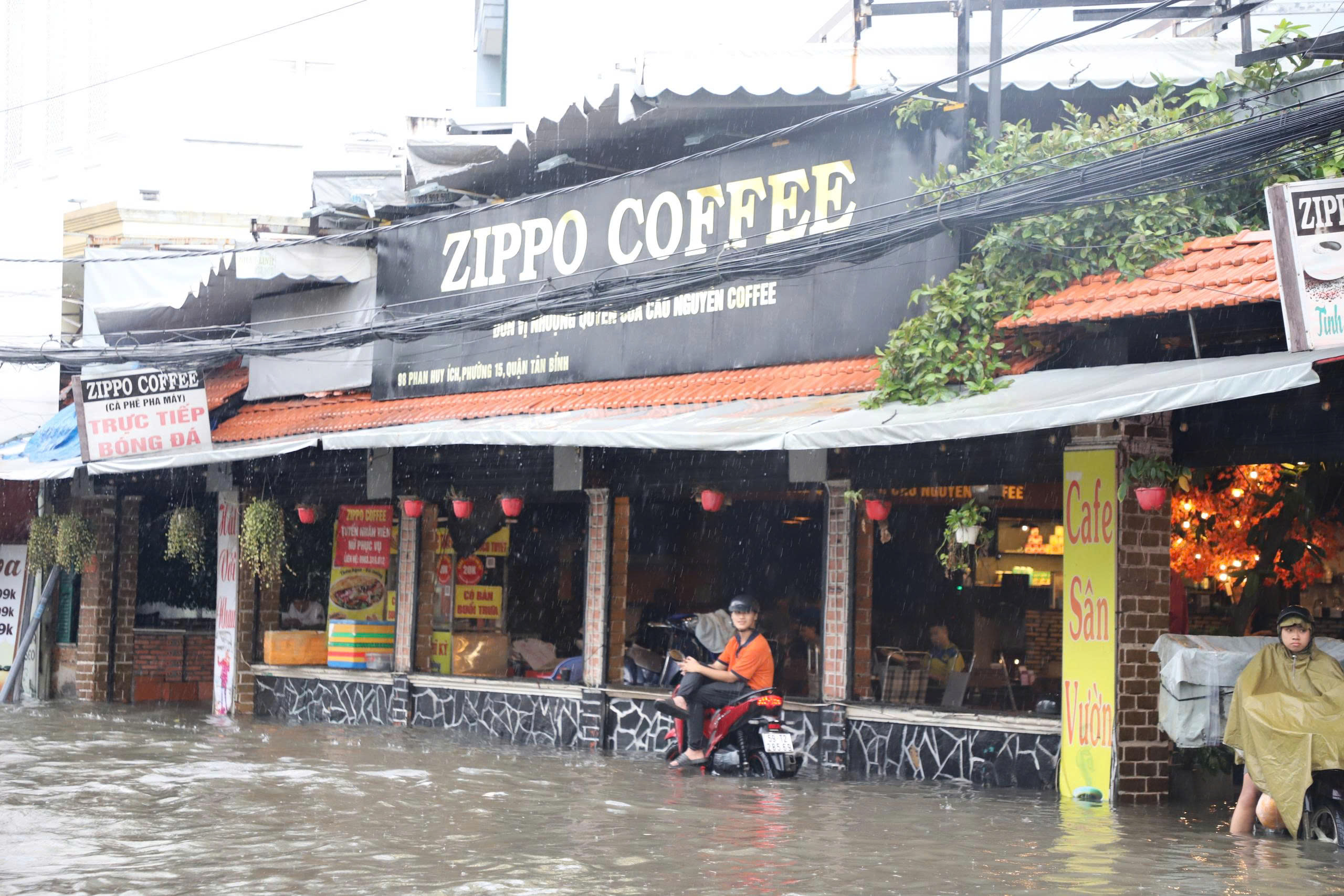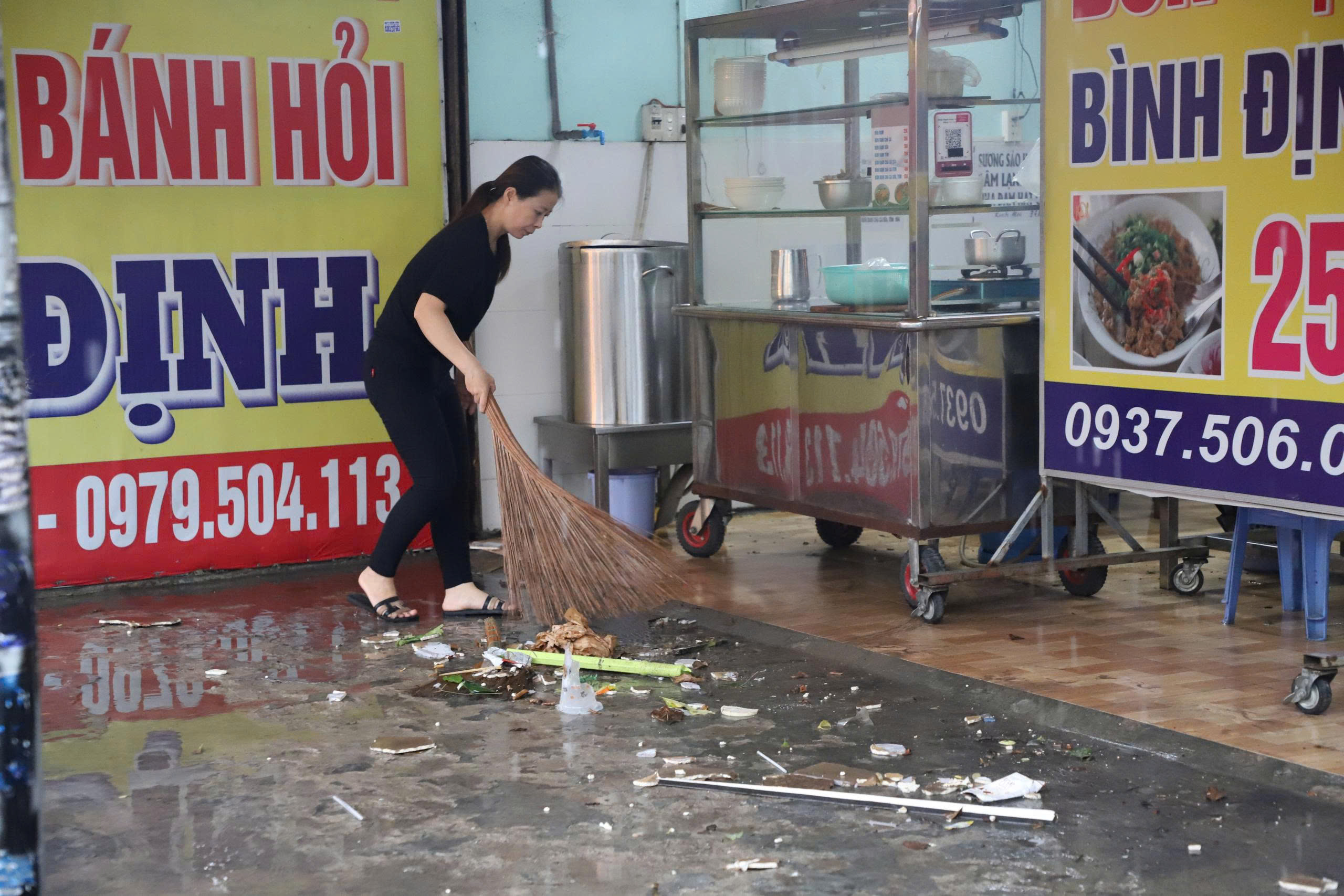 Trong khi đó, chị Hải My bán đồ ăn, cà phê buổi sáng cũng than thở: Hôm nay coi như mất thu nhập rồi, mưa ngập thế này không khách nào ghé ăn hoặc mua đi cả".