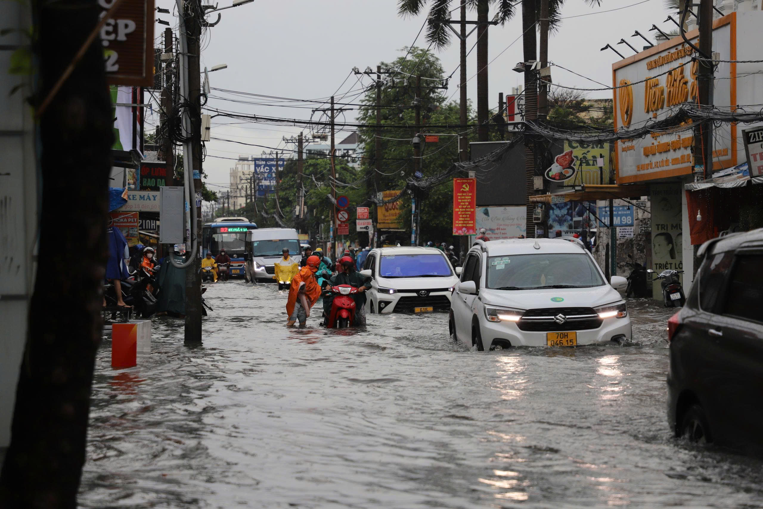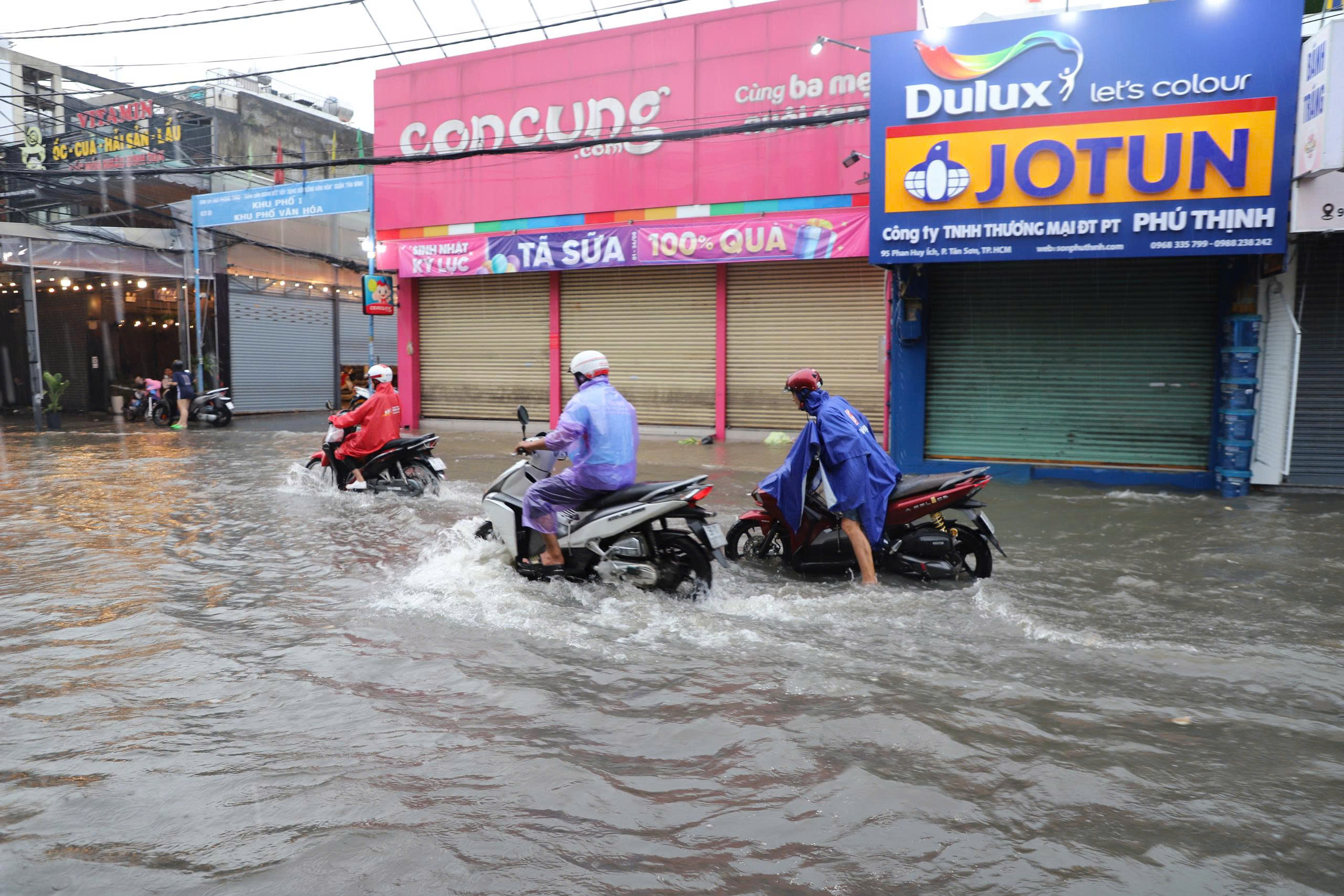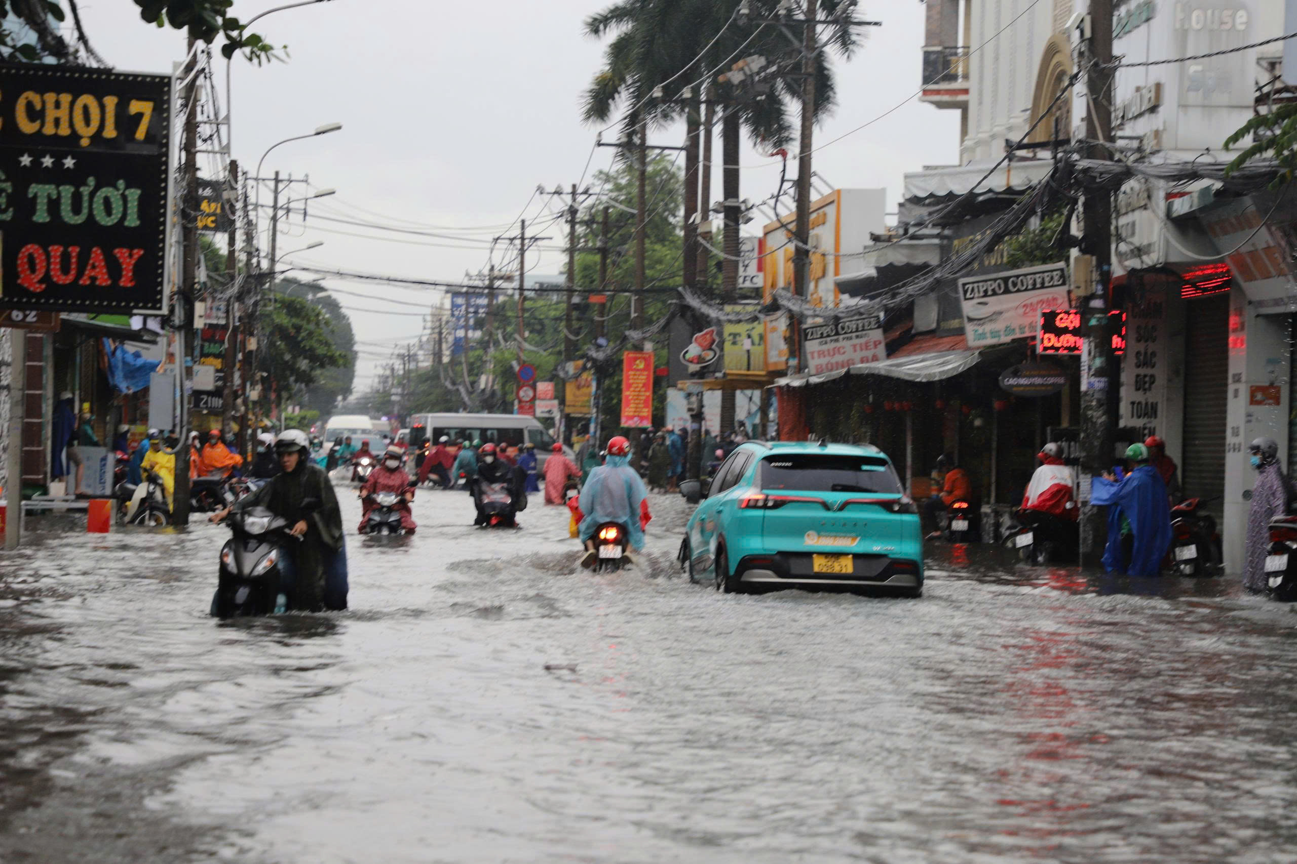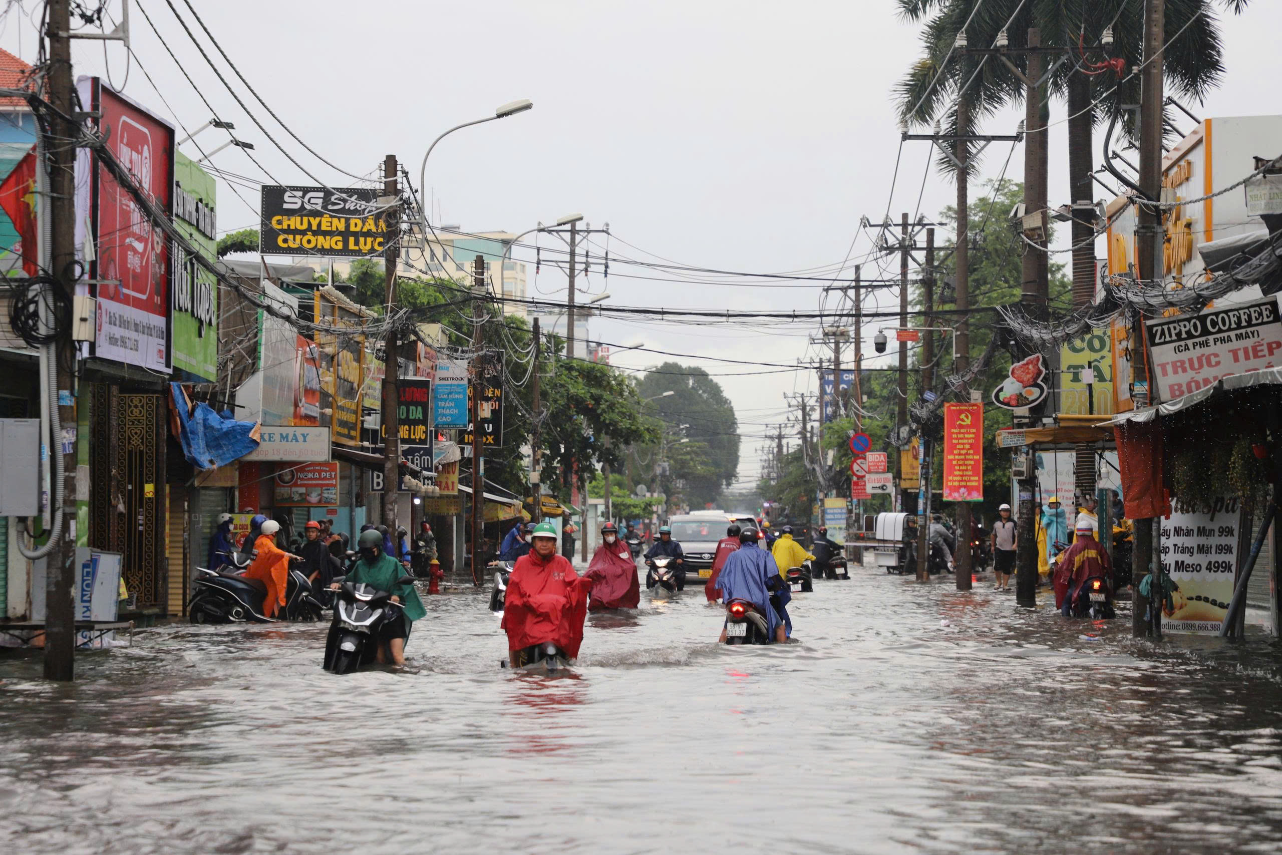 Khoảng 3h sáng nay (21/8), cơn mưa lớn kèm theo giông, sấm sét đã dồn dập trút xuống nhiều khu vực của TP.HCM. Ngay sau đó, nhiều tuyến đường ngập trong biển nước. Đến 7h30 sáng cùng ngày, nhiều tuyến đường ở TP.HCM như Song Hành, Nguyễn Văn Quá (quận 12 cũ), Phạm Văn Chiêu, Lê Đức Thọ (quận Gò Vấp cũ)... vẫn trong tình trạng ngập úng nghiêm trọng, như một dòng sông lớn.