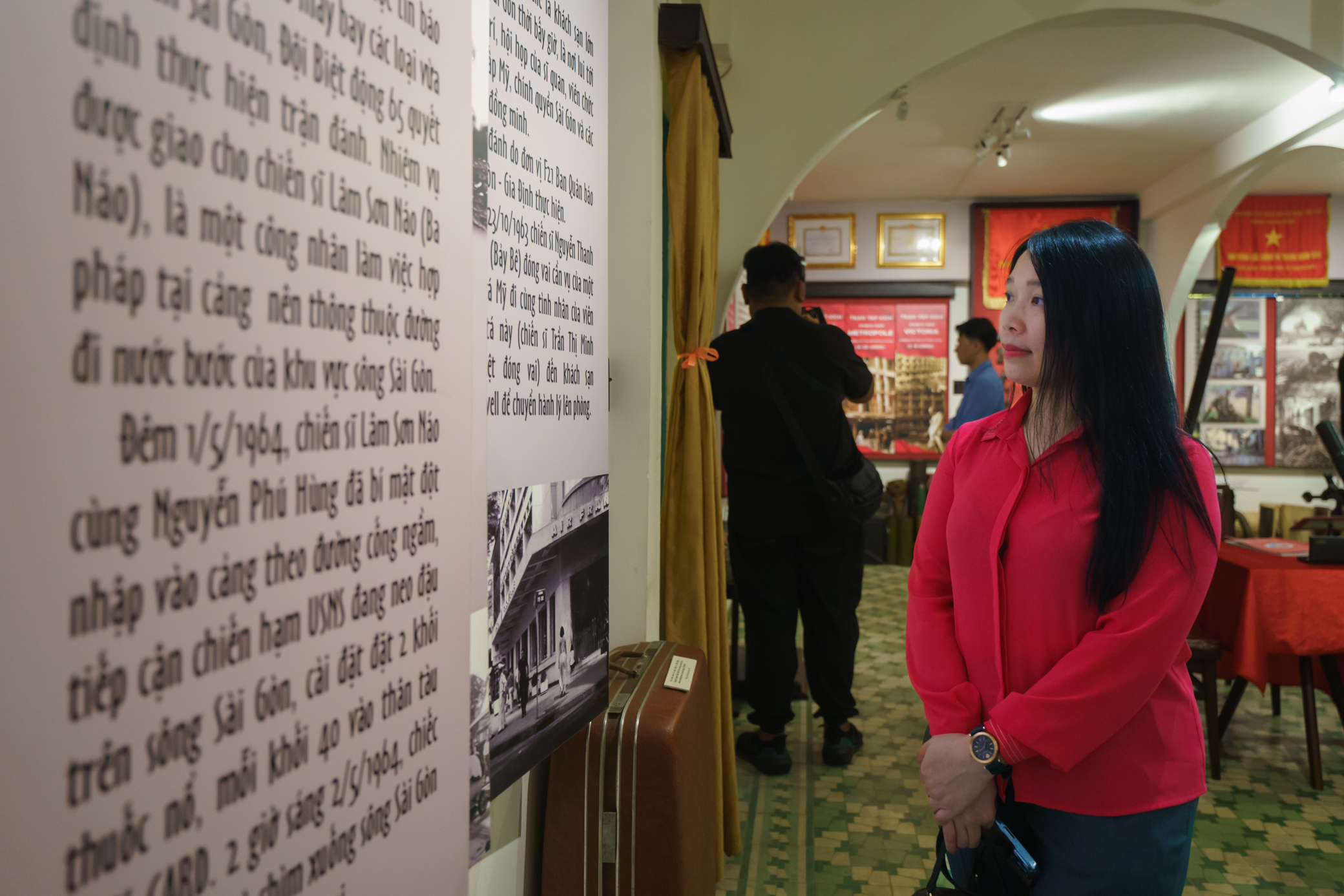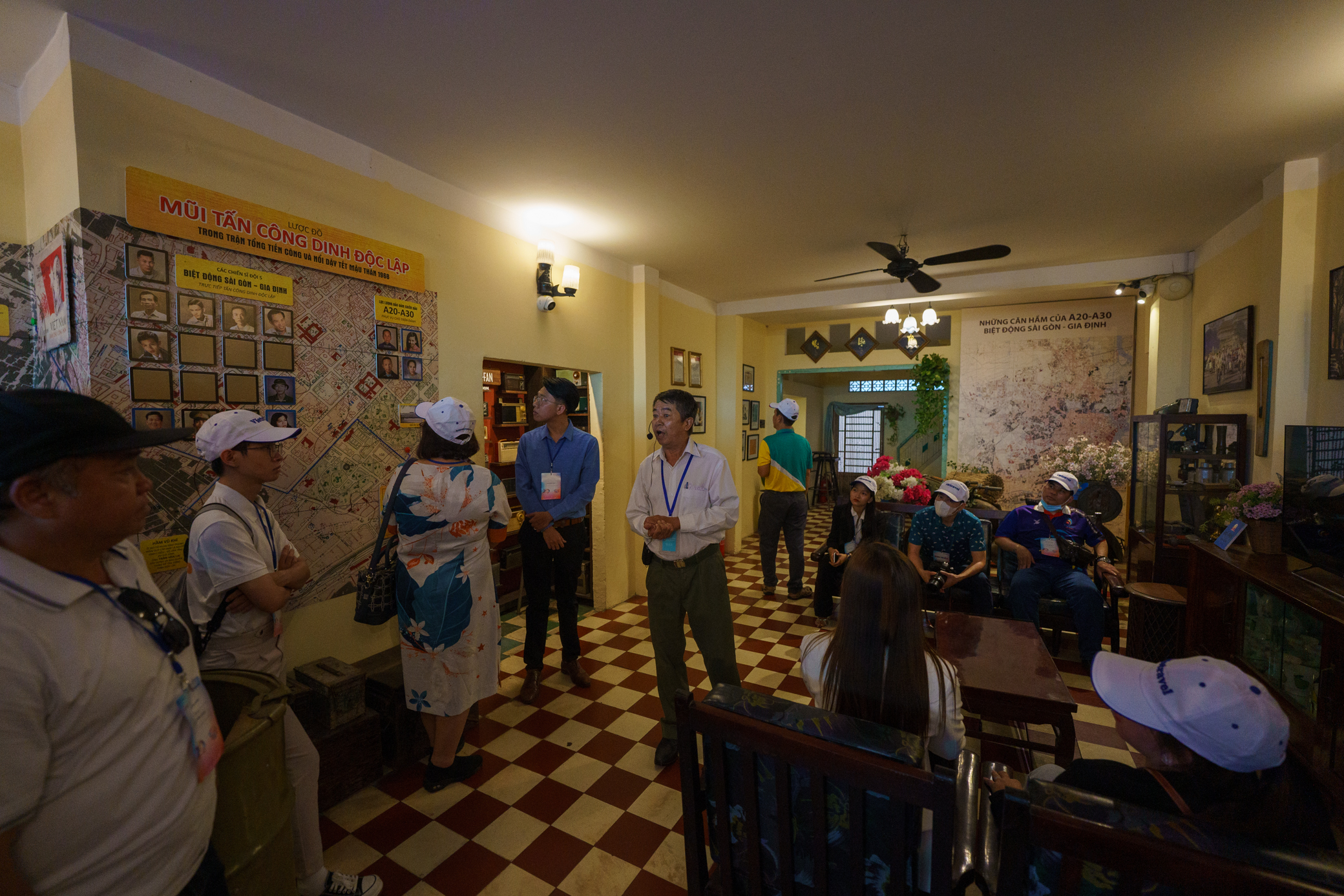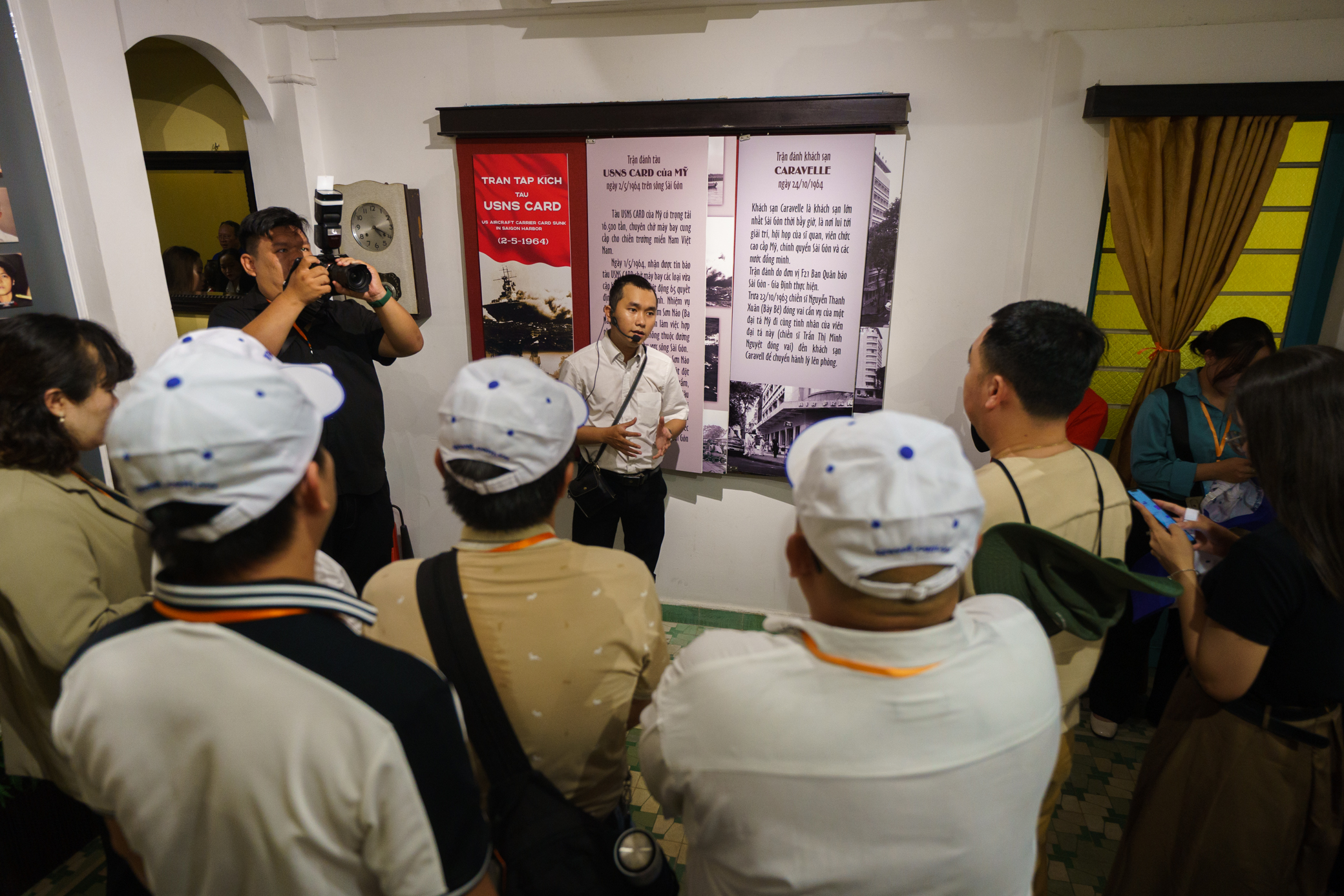 Hướng dẫn viên thuyết minh về sự hình thành nên lực lượng Biệt động Sài Gòn tại Bảo tàng Biệt động Sài Gòn.