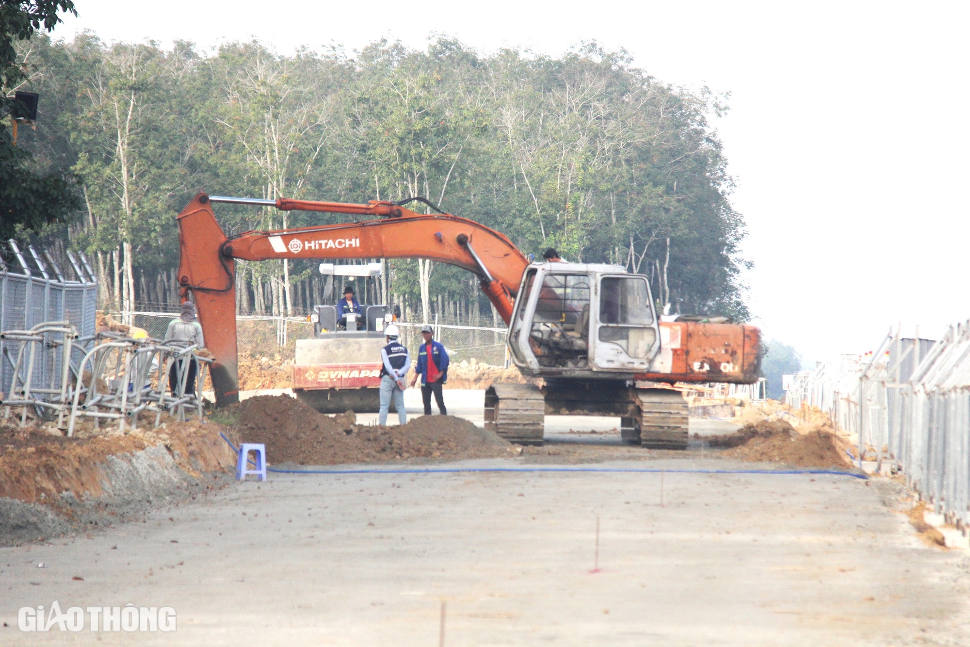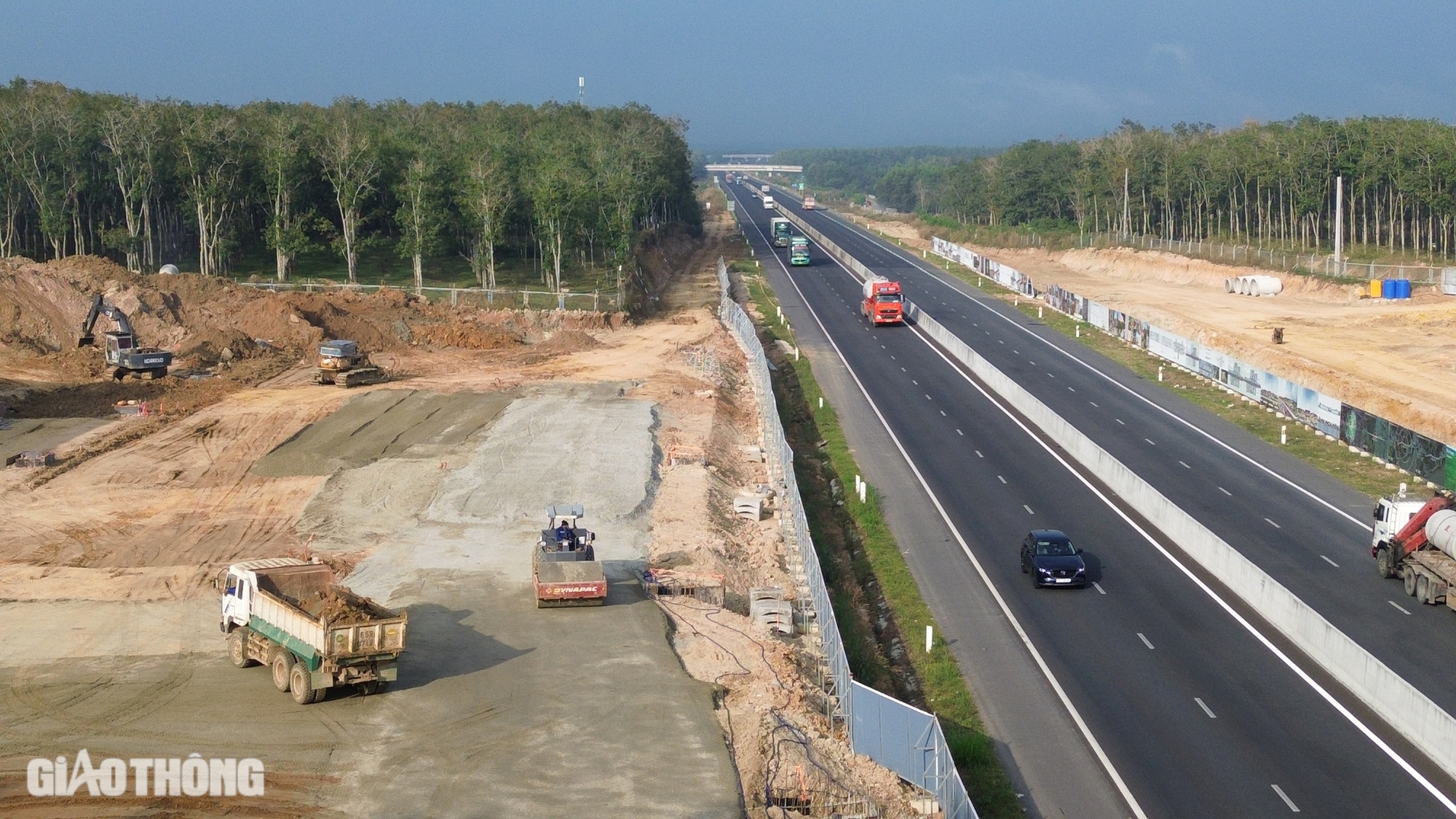 Trên công trường, hàng chục xe lu, xe cuốc làm việc liên tục, đẩy nhanh tiến độ để kịp đưa vào khai thác, phục vụ người dân đi lại dịp Tết Nguyên đán 2025.
