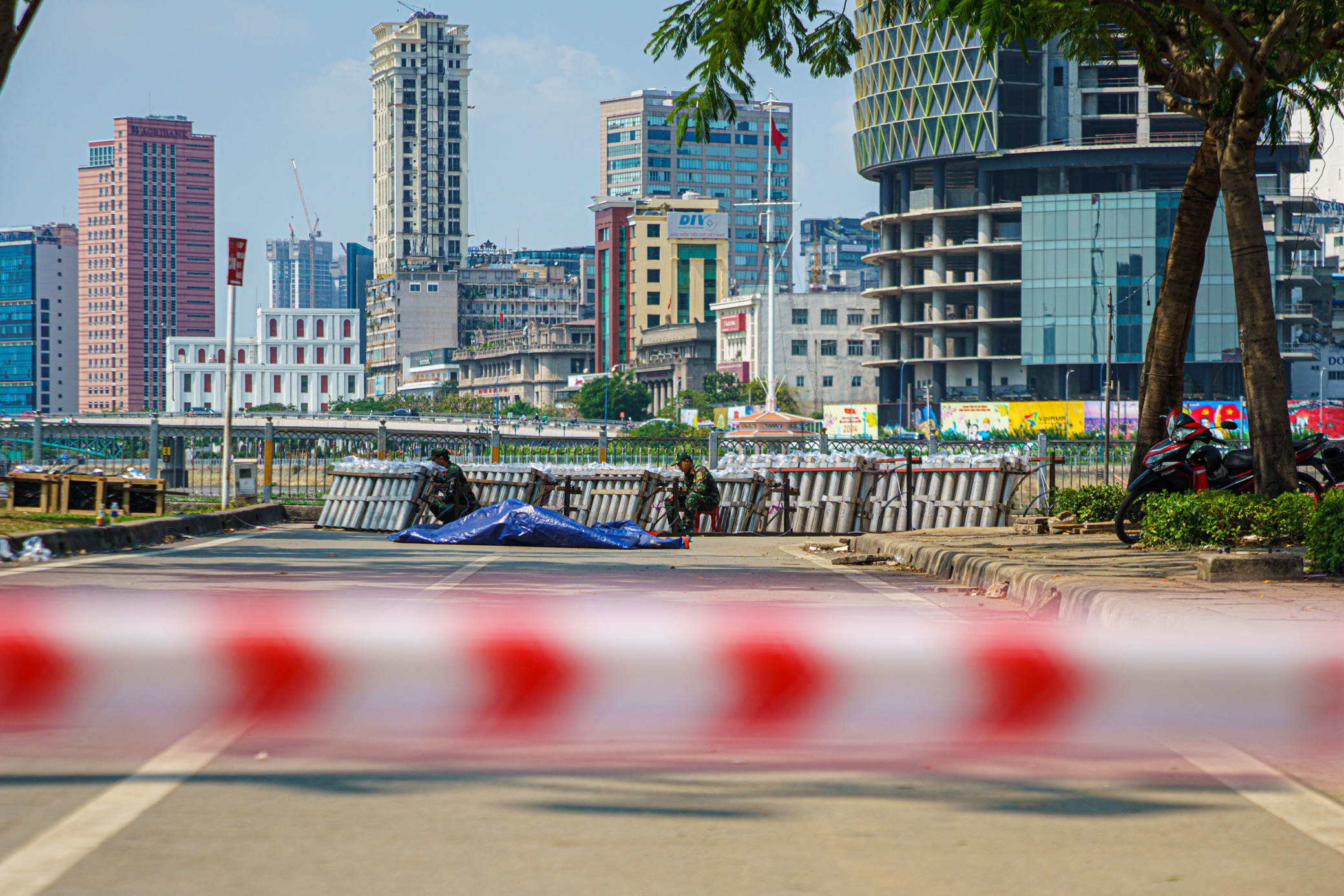 Những ngày này, khu vực nóc hầm vượt sông Sài Gòn hạn chế người dân di chuyển và phong tỏa một phần để phục vụ lắp đặt trận địa pháo hoa.