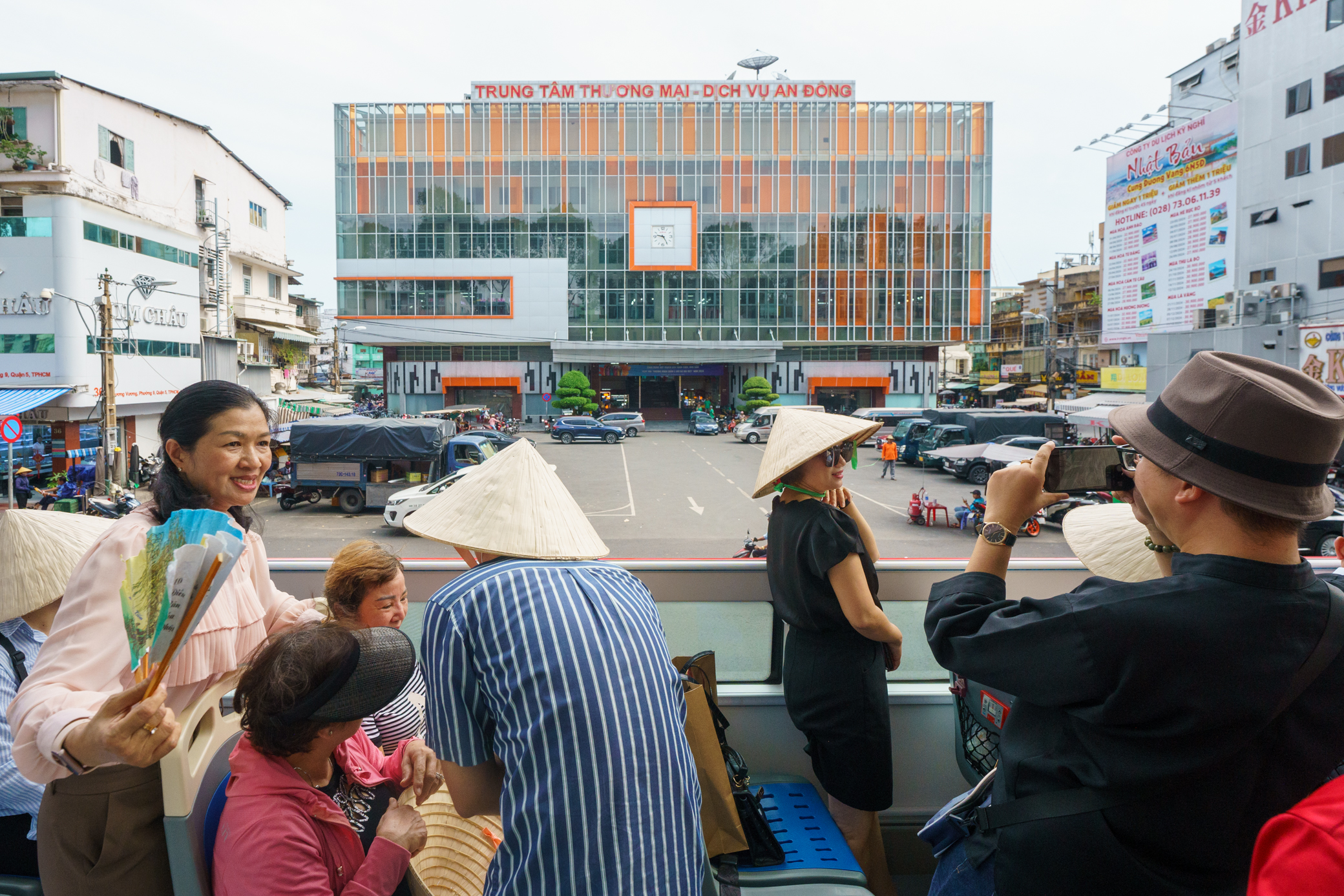 Trong chuyến trải nghiệm đầu tiên của tuyến buýt mui trần hai tầng nối Sài Gòn với Chợ Lớn, xe khởi đầu chuyến hành trình tại chợ Bình Tây. Đây là ngôi chợ cổ lớn ở TP.HCM, còn được gọi là Chợ Lớn. Trải qua bao thăng trầm lịch sử với nhiều đợt trùng tu lớn, ngôi chợ này vẫn giữ nguyên nét văn hóa cổ kính như thuở ban đầu.