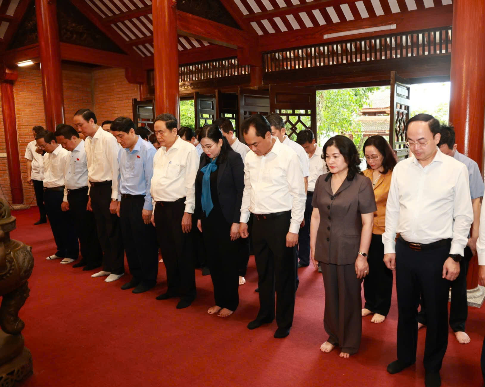 Chủ tịch Quốc hội Trần Thanh Mẫn và lãnh đạo tỉnh Thái Nguyên dâng hương và tặng quà các thương, bệnh binh, thân nhân gia đình liệt sĩ tại khu di tích ngày 20/7/2025.