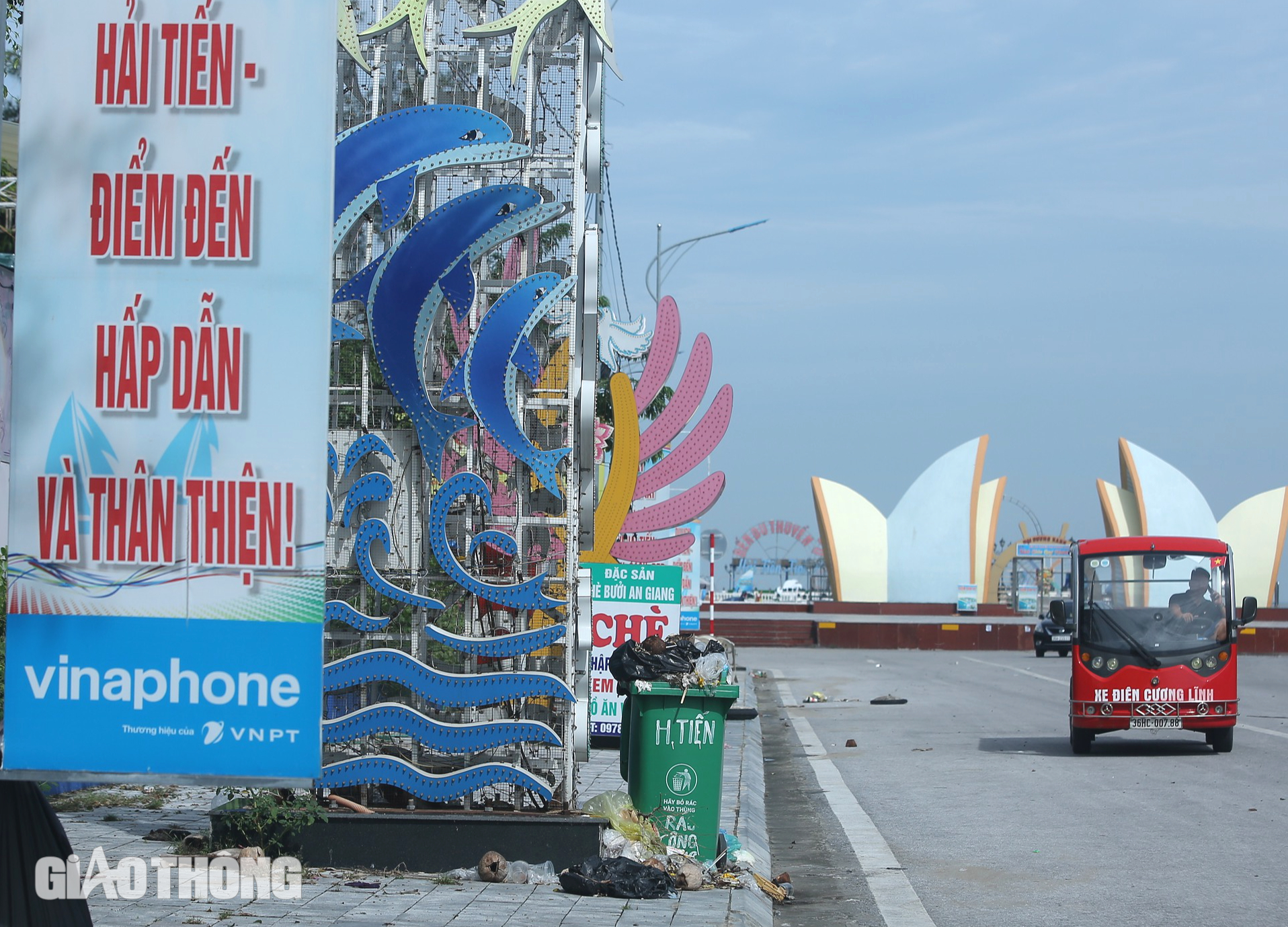 Tại các tuyến đường gần bãi tắm, xe điện đỗ dàn hàng ngang, khá lộn xộn, gây mất trật tự, an toàn giao thông. Hai bên đường, xuất hiện nhiều bãi rác tự phát, cỏ mọc um tùm.