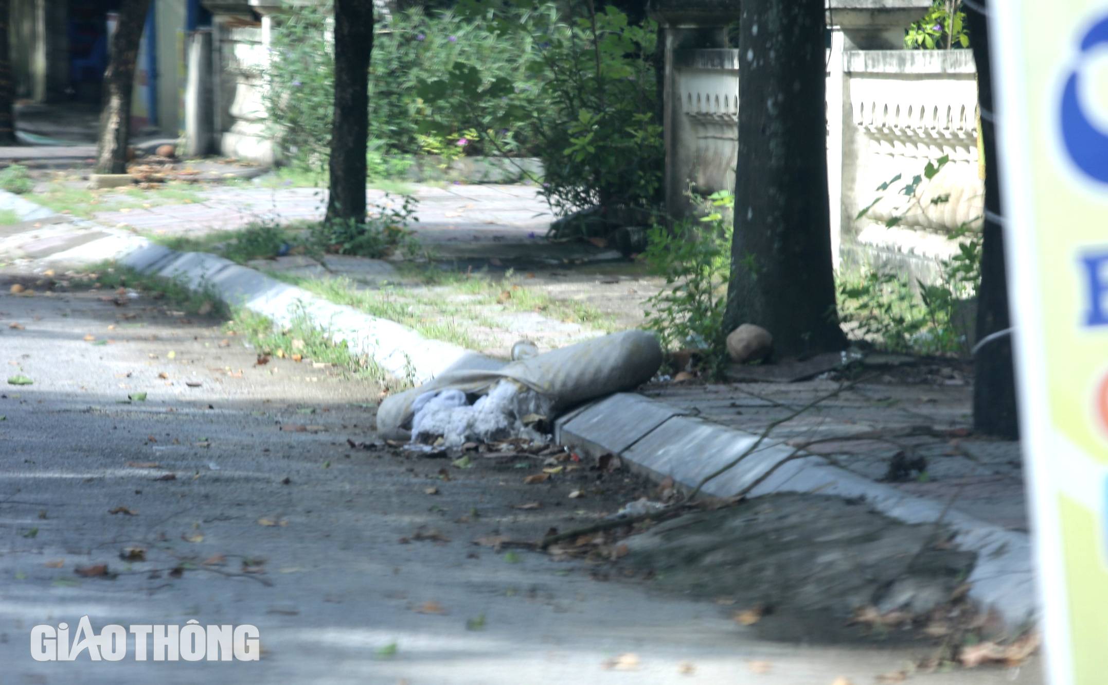 Dọc đường, không khó để bắt gặp những vật dụng, rác thải vứt bỏ ngoài đường như chiếc gối bông bị rách như thế này.