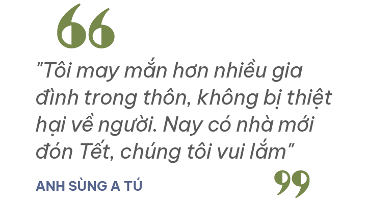 Anh Sùng A Tú, một người dân Nậm Tông cho biết: "Tôi may mắn hơn nhiều gia đình trong thôn, không bị thiệt hại về người. Nay có nhà mới đón Tết, chúng tôi vui lắm".