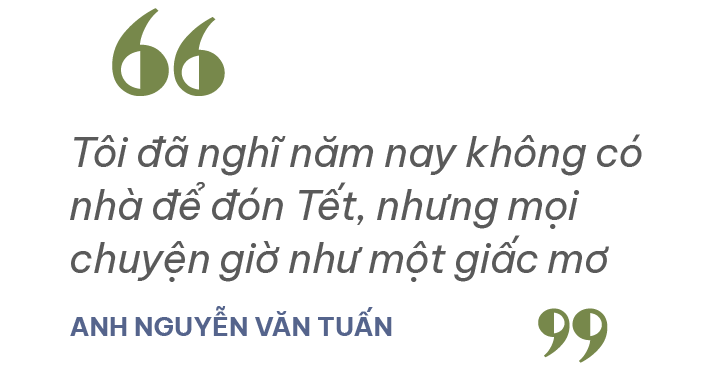 Anh Nguyễn Văn Tuấn, người đã mất nhà, mất bố mẹ và một con sau trận lũ nói: "Tôi đã nghĩ năm nay không có nhà để đón Tết, nhưng mọi chuyện giờ như một giấc mơ".