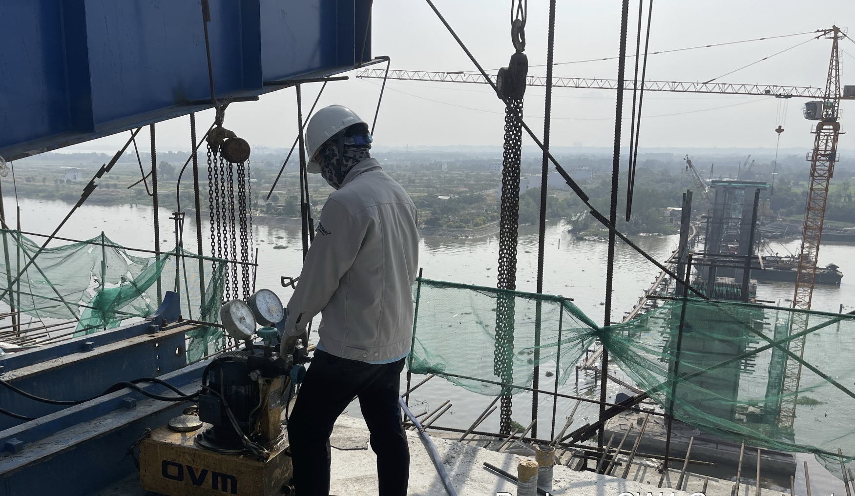 Một số mũi thi công đã hoàn thành đúc hẫng, thử tải giàn giáo, hoàn thành khối K0 đúc trên đà giáo, chuẩn bị lắp đặt xe đúc hẫng các khối Ki. Bên cạnh đó, hoàn thành được 23/136 dầm tại công trường và 12/136 dầm tại nhà máy BT 620 Châu Thới.