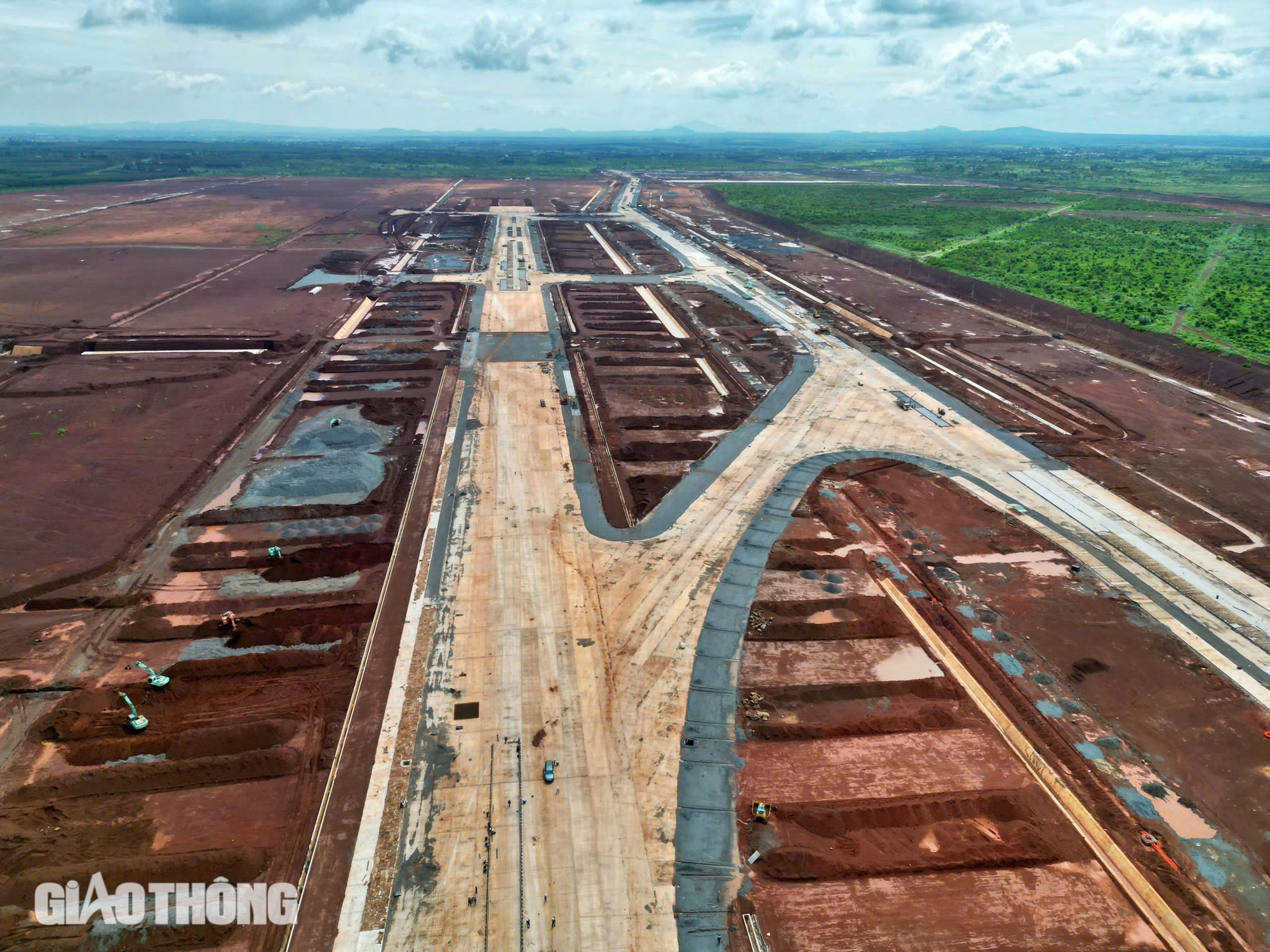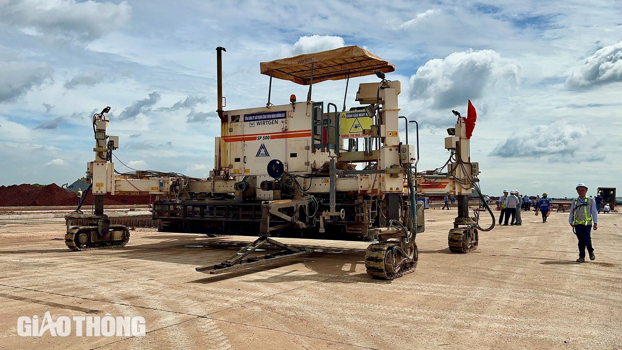 Tương tự gói thầu đường cất hạ cánh, đường lăn sân đỗ cũng cơ bản xong phần móng, lớp mặt bê tông đang được hoàn thiện với tốc độ nhanh.