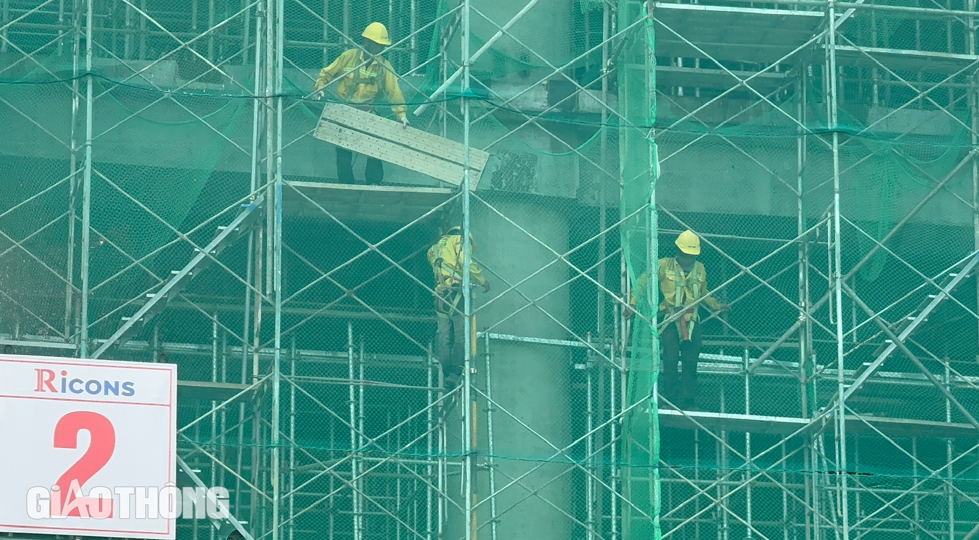 Trên công trường công nhân cũng dàn trải ở phần chính và cánh của bông sen, tạo nên bức tranh sinh động của sự nỗ lực từng ngày để thực hiện lời hứa đưa dự án đến đích đúng hẹn.