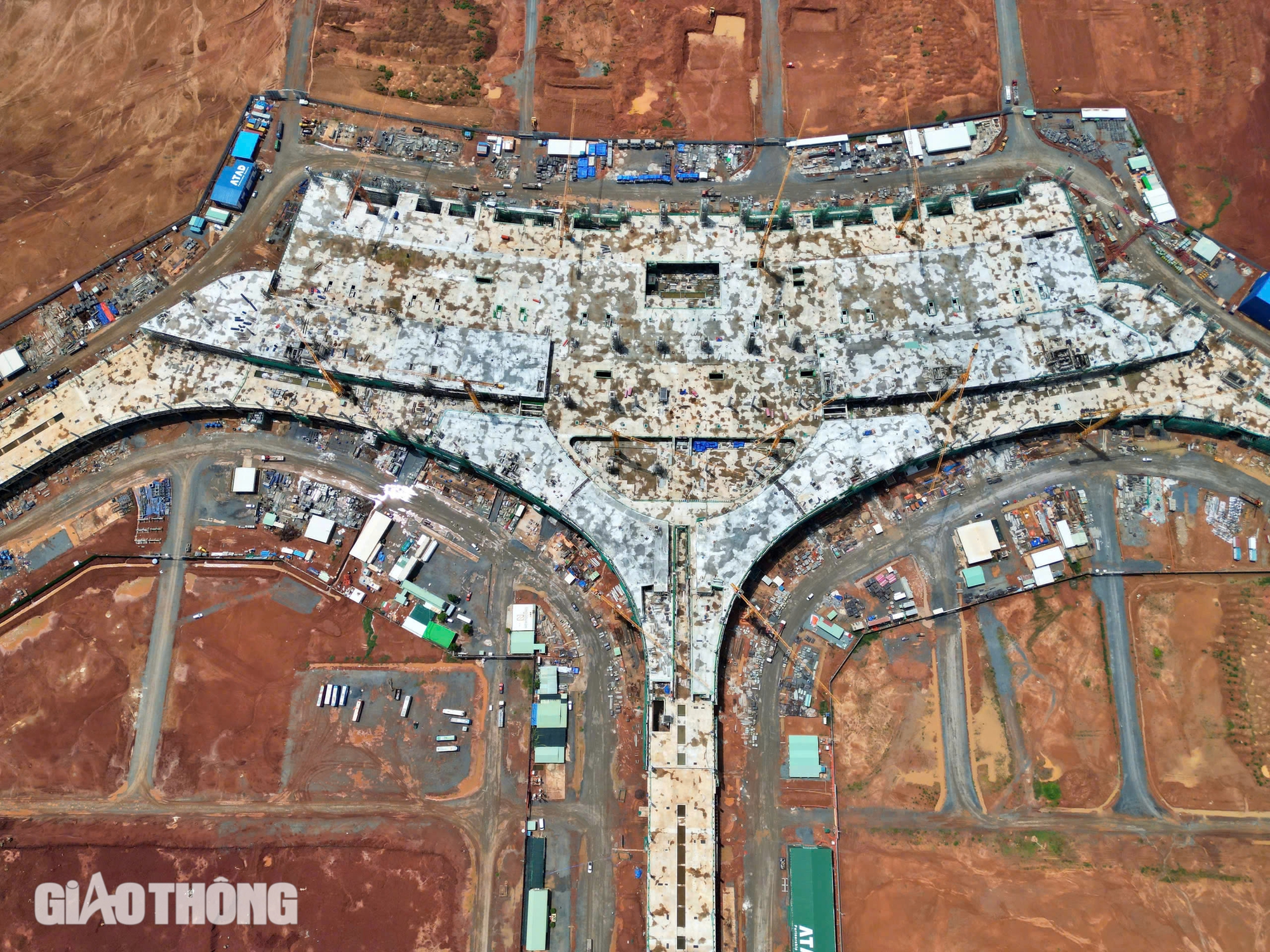 Tại gói thầu nhà ga hành khách, sau 1 năm khởi công “trái tim” của sân bay đã nên hình hài. Ở giai đoạn này, phần bê tông các sàn đã xong, công nhân tập trung thi công kết cấu thép mái để qua tháng 9 tới có thể lắp mái nhà ga.