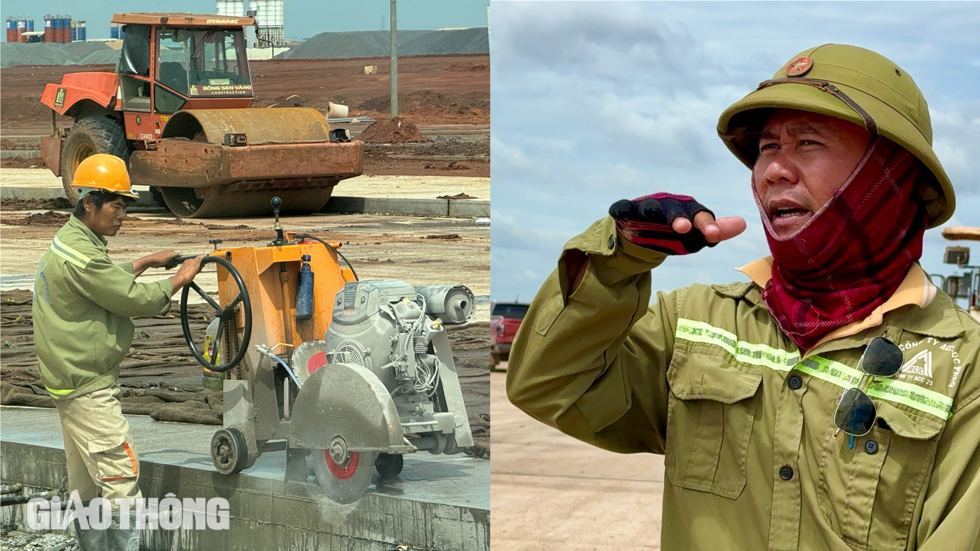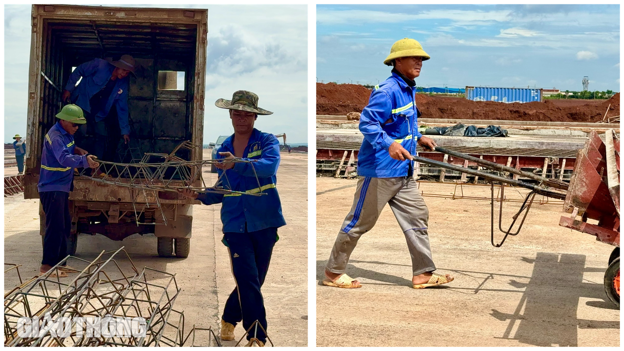 Dù hiện nay tiến độ đang vượt nhiều tháng, dịp lễ công trường vẫn sôi động. Công nhân Nguyễn Văn Hoàng (quê Thanh Hóa, bên phải) cùng đồng nghiệp tập trung thi công các lớp bê tông xi măng, làm hệ thống thoát nước, mương nước, thổi bụi, lắp các ván khuôn… "Lễ làm được thêm thu nhập nên anh em phấn khởi. Sau lễ tôi sẽ xin về 5 ngày để thăm nhà", anh Hoàng nói.