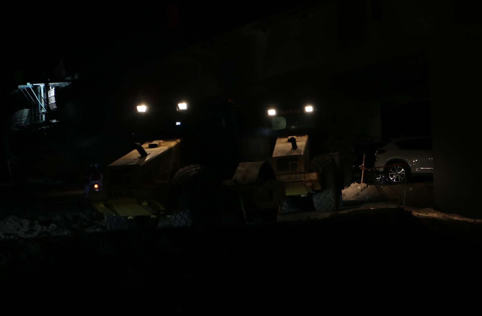 Cách đó không xa, tại công trường Vành đai 3 TP.HCM đoạn qua huyện Nhơn Trạch, không khí vẫn khẩn trương. Dưới ánh đèn pha, từng dải đất đã vạch mốc sẵn, xe ủi, xe đào nối nhau chạy. Ở đây, công nhân nói ít, mọi người giao tiếp bằng ánh mắt, cử chỉ và thao tác bởi thời gian quá quý giá, ai cũng vội vàng.