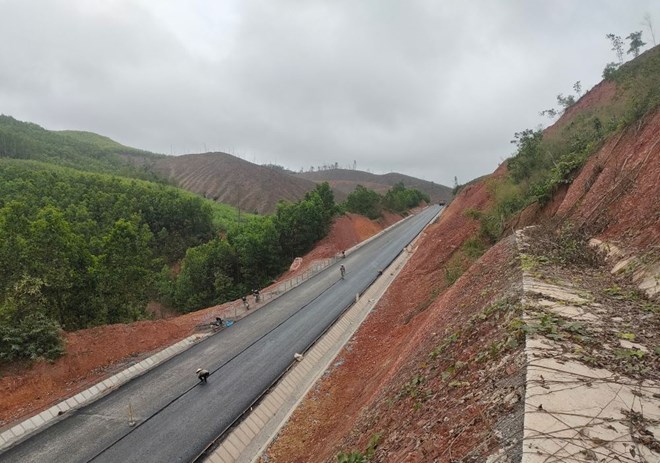 Dự án, đường được thiết kế theo tiêu chuẩn cấp III miền núi, 2 làn xe, rộng 9m, thực hiện cạp mở rộng và hạ dốc, cắt cua trên cơ sở hướng tuyến cũ, tổng mức đầu tư hơn 800 tỉ đồng từ nguồn vốn ngân sách tỉnh Quảng Ninh. Ảnh: Nguyễn Hùng.